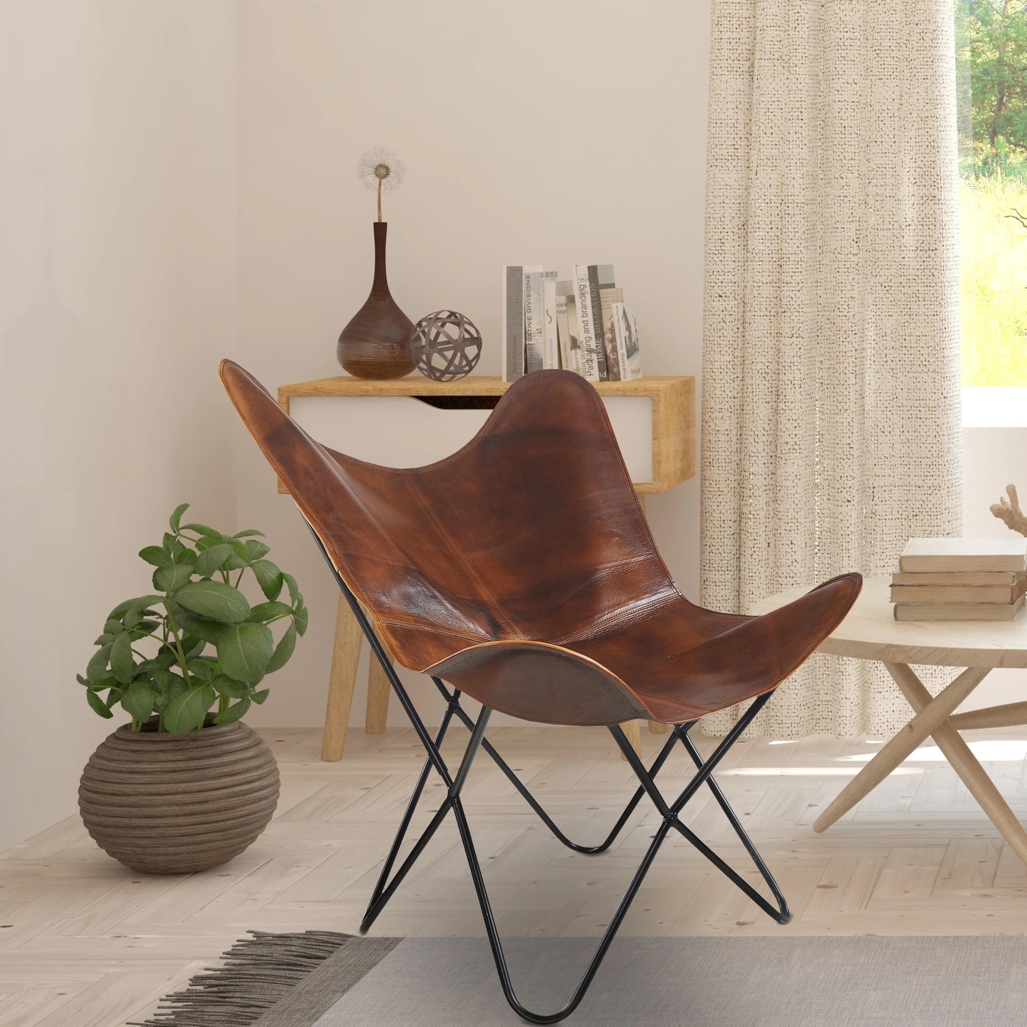 Sevita Brown Leather Butterfly Chair - 37 L x 27 W x 16 D