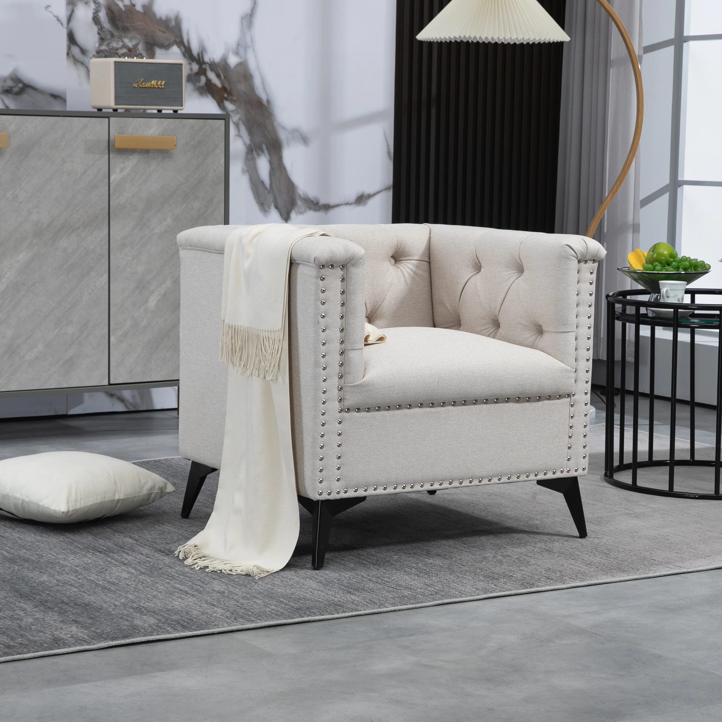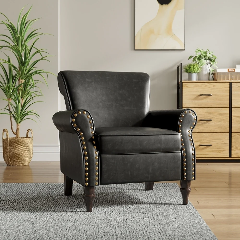 Nailheads Accent Chair Faux Leather Armchair