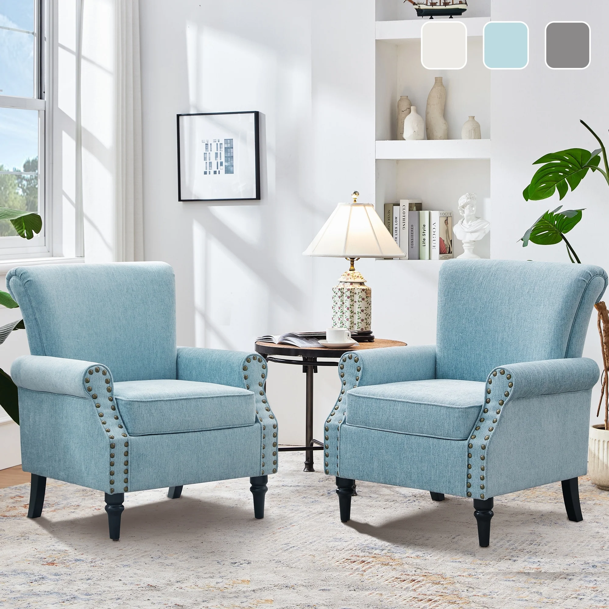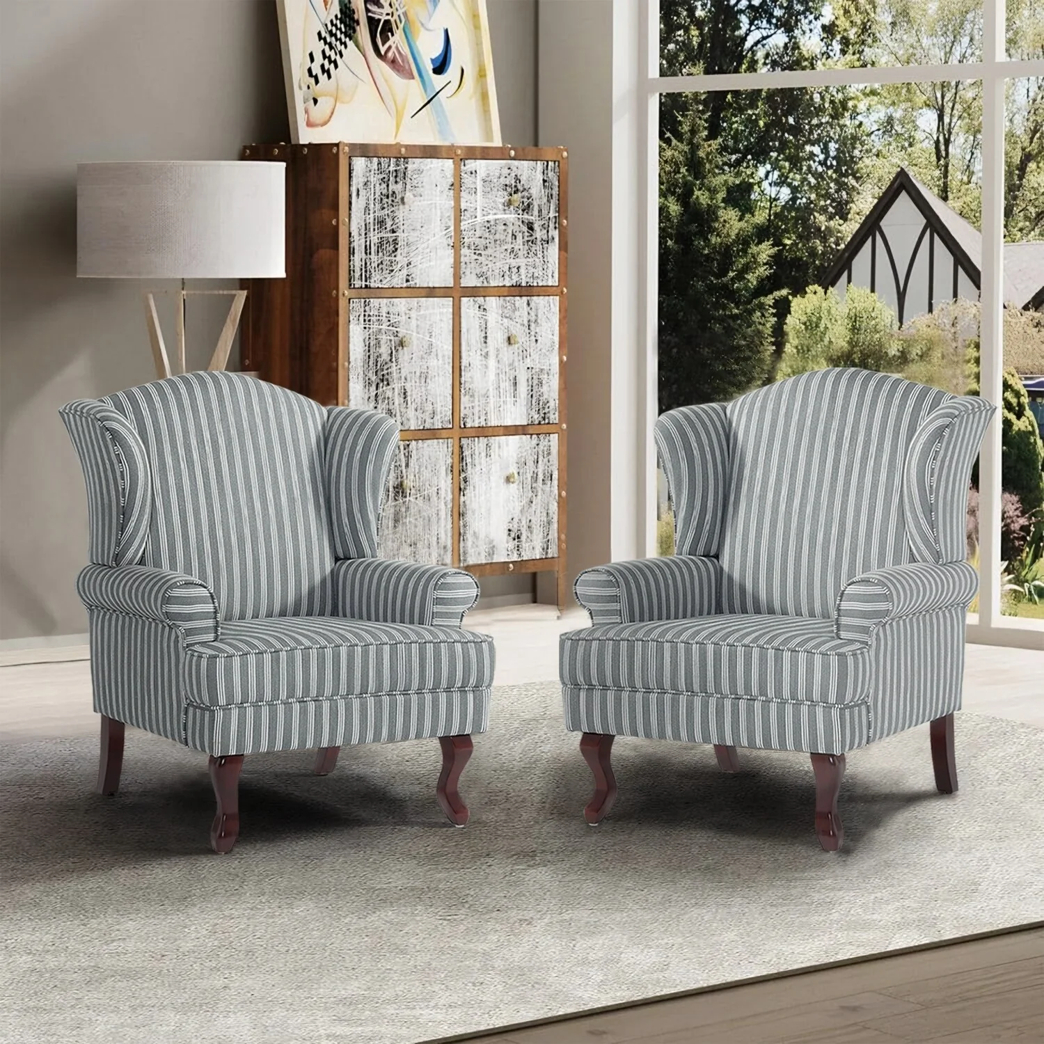 2 Set Traditional Wingback Accent Chairs Upholstered Armchair
