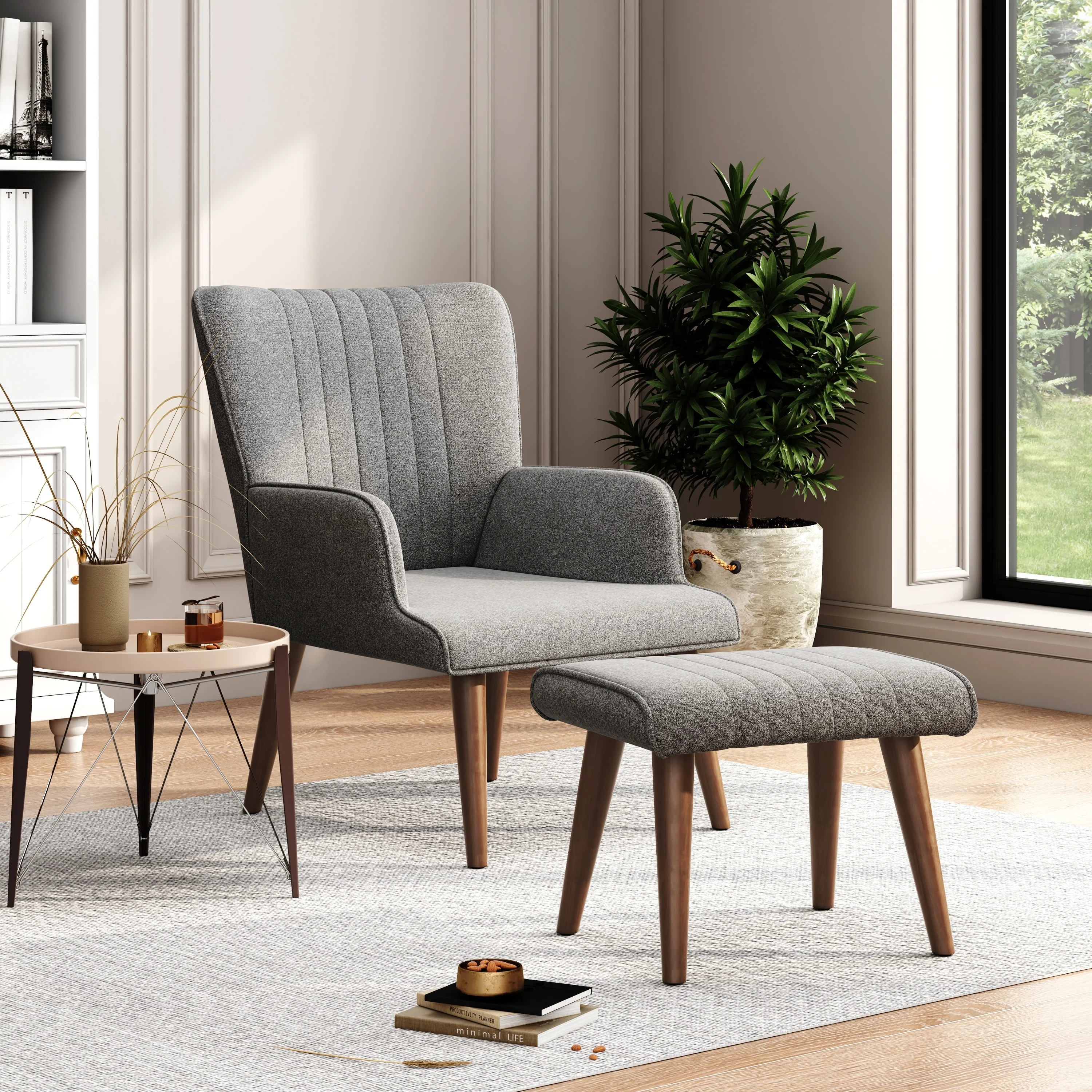 Mid Century Modern Accent Chairs Set of 2 with Side Table