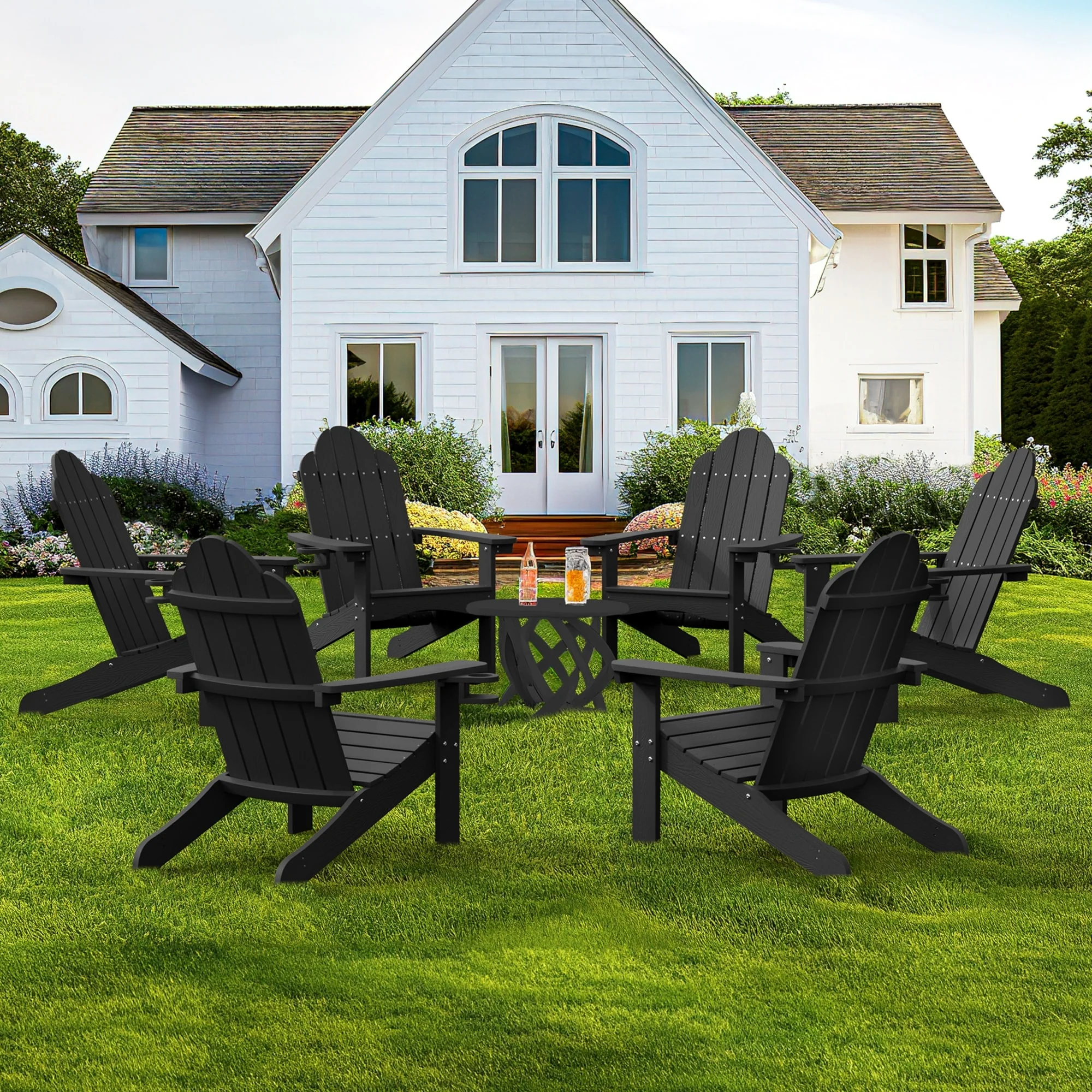 Commercial All Weather Adirondack Table and 4 Chairs with Cupholders