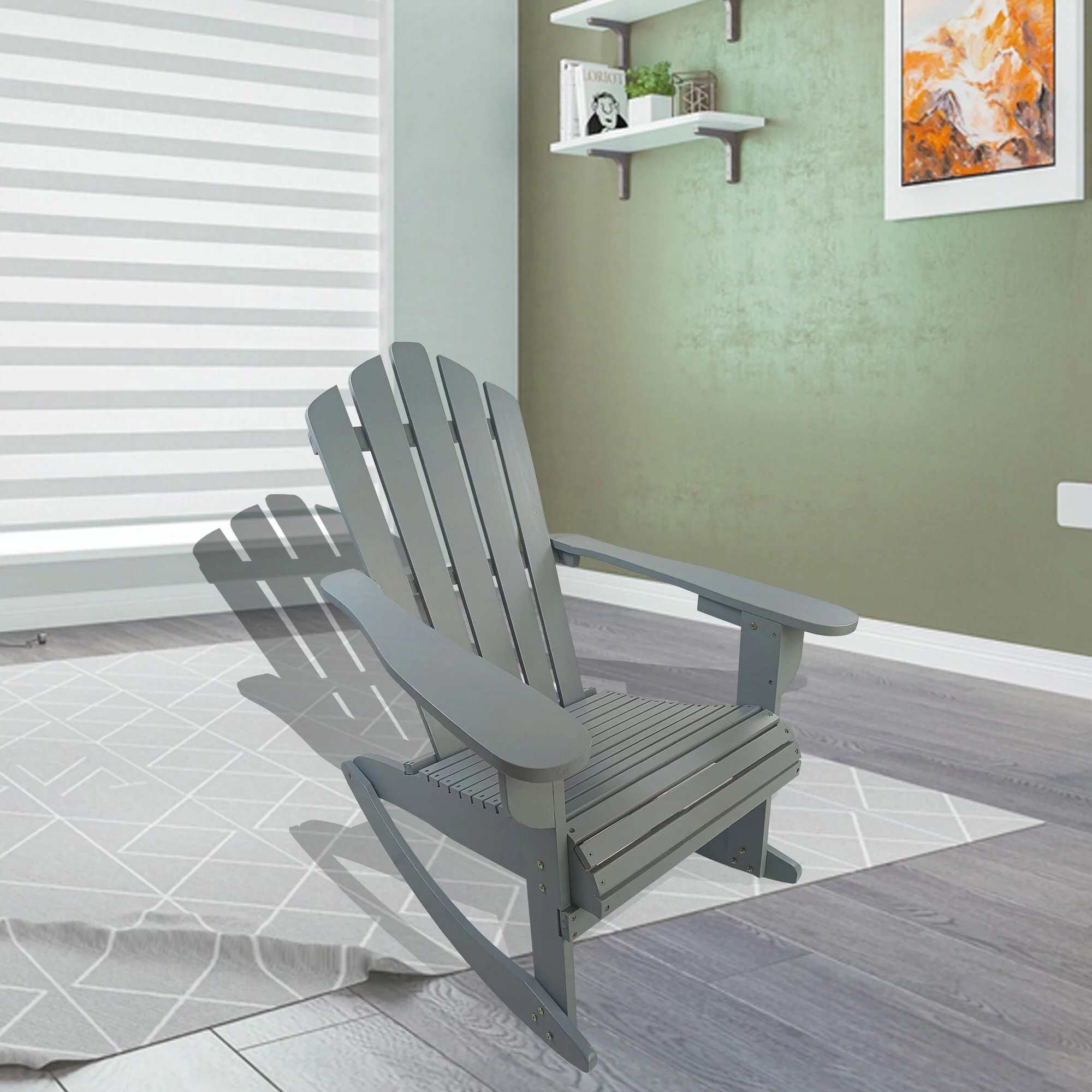 Reclining Wooden Outdoor Rocking Adirondack chair,walnut
