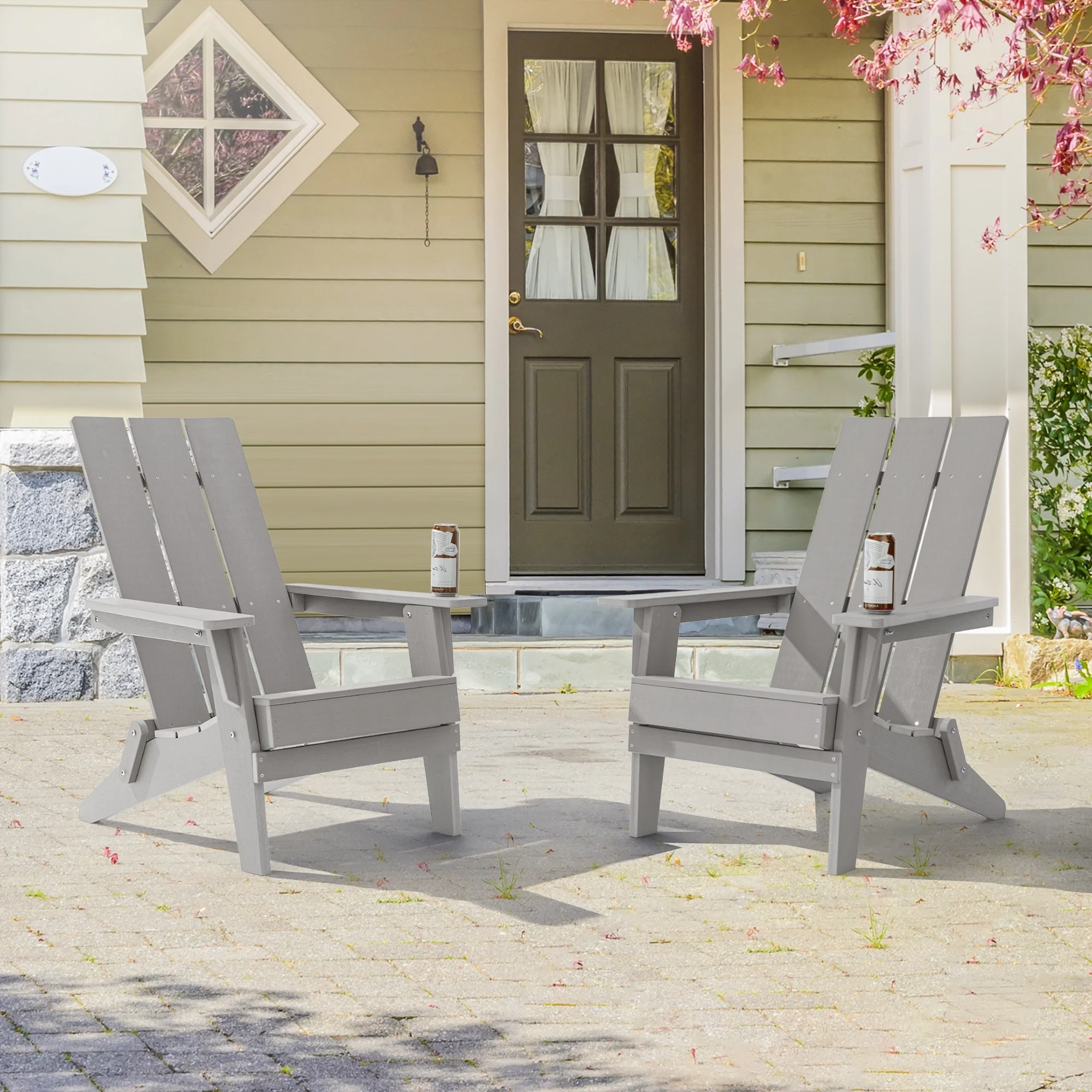 Grey Plastic Folding Adirondack Chair Set