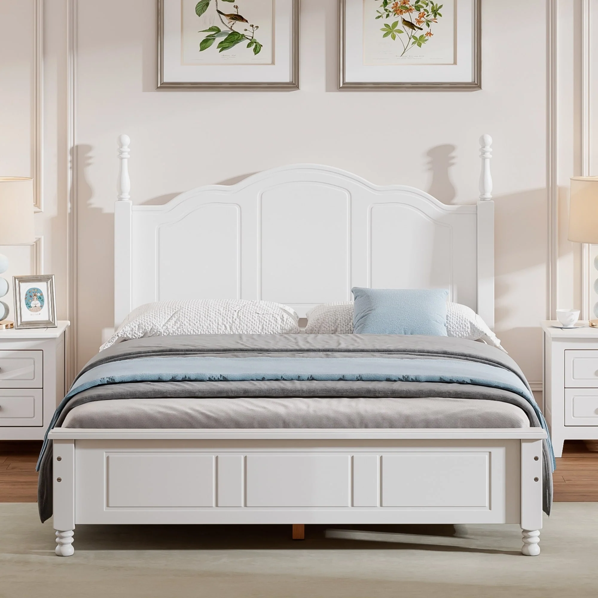 Grey Full Size House Frame Floor Bed with Safety Fence Design