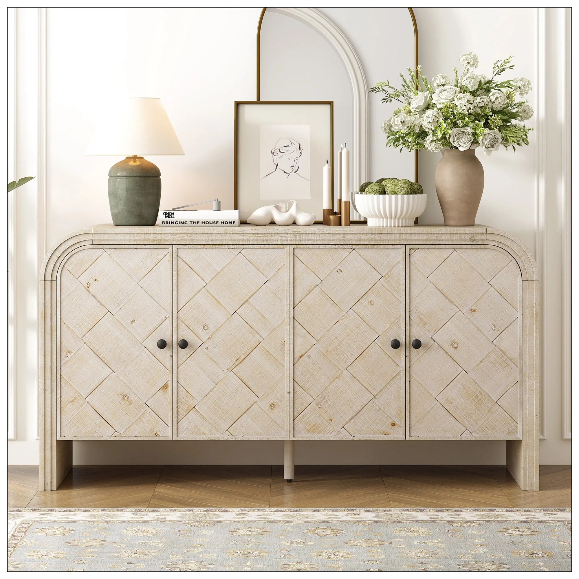 Modern Wave-Pattern Sideboard Cabinet with 2 Drawers