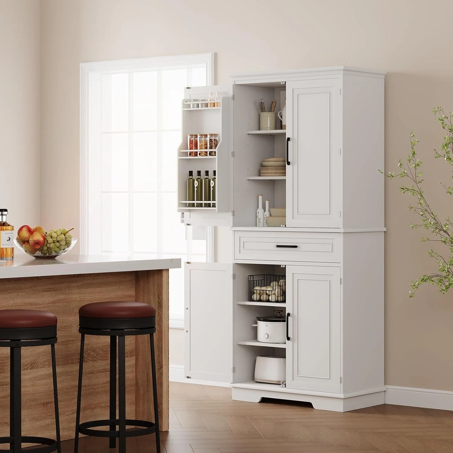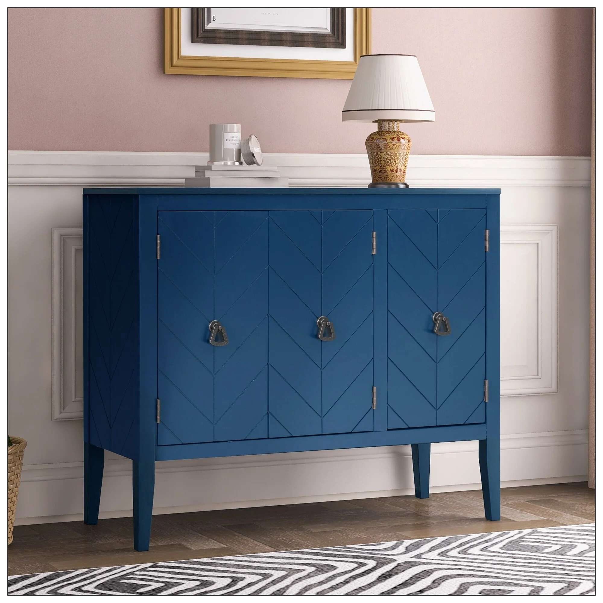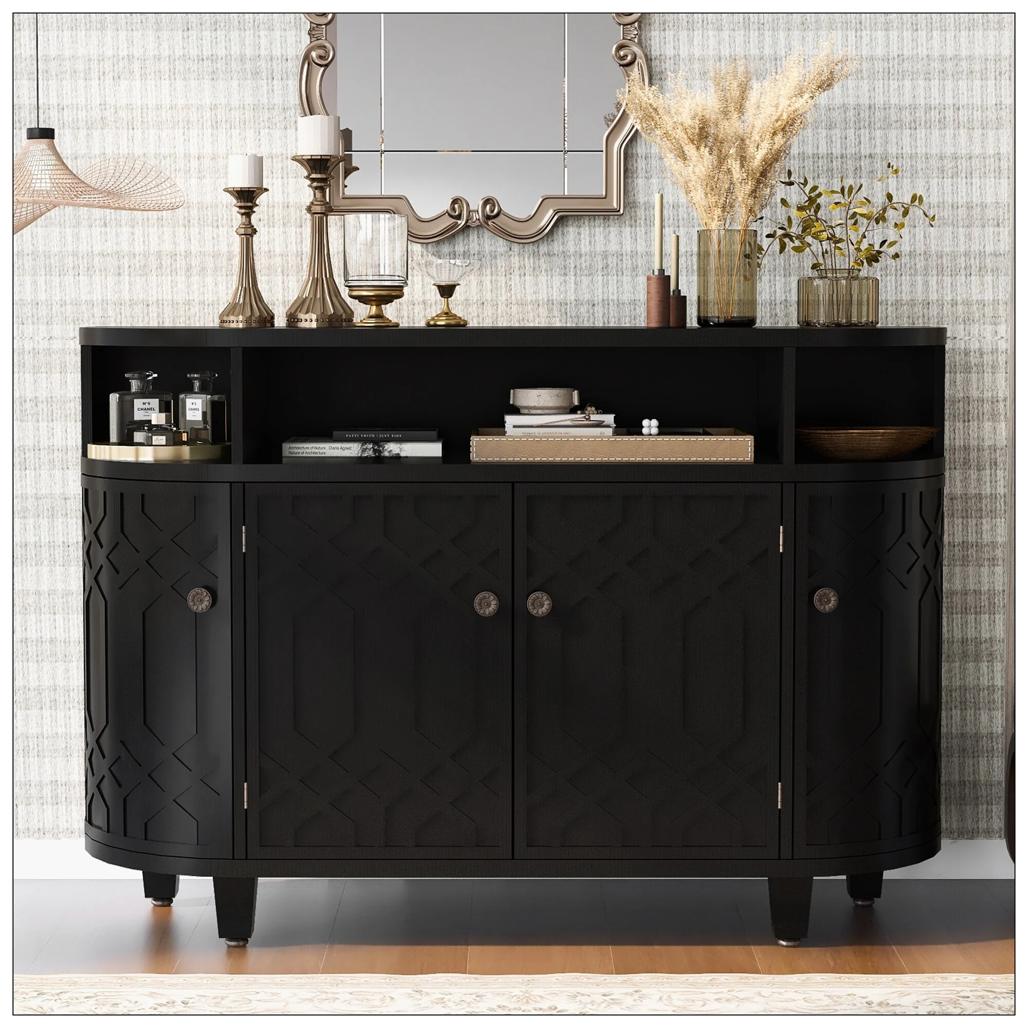 Adjustable Shelf Storage Sideboard with 3 Retro Metal Handles