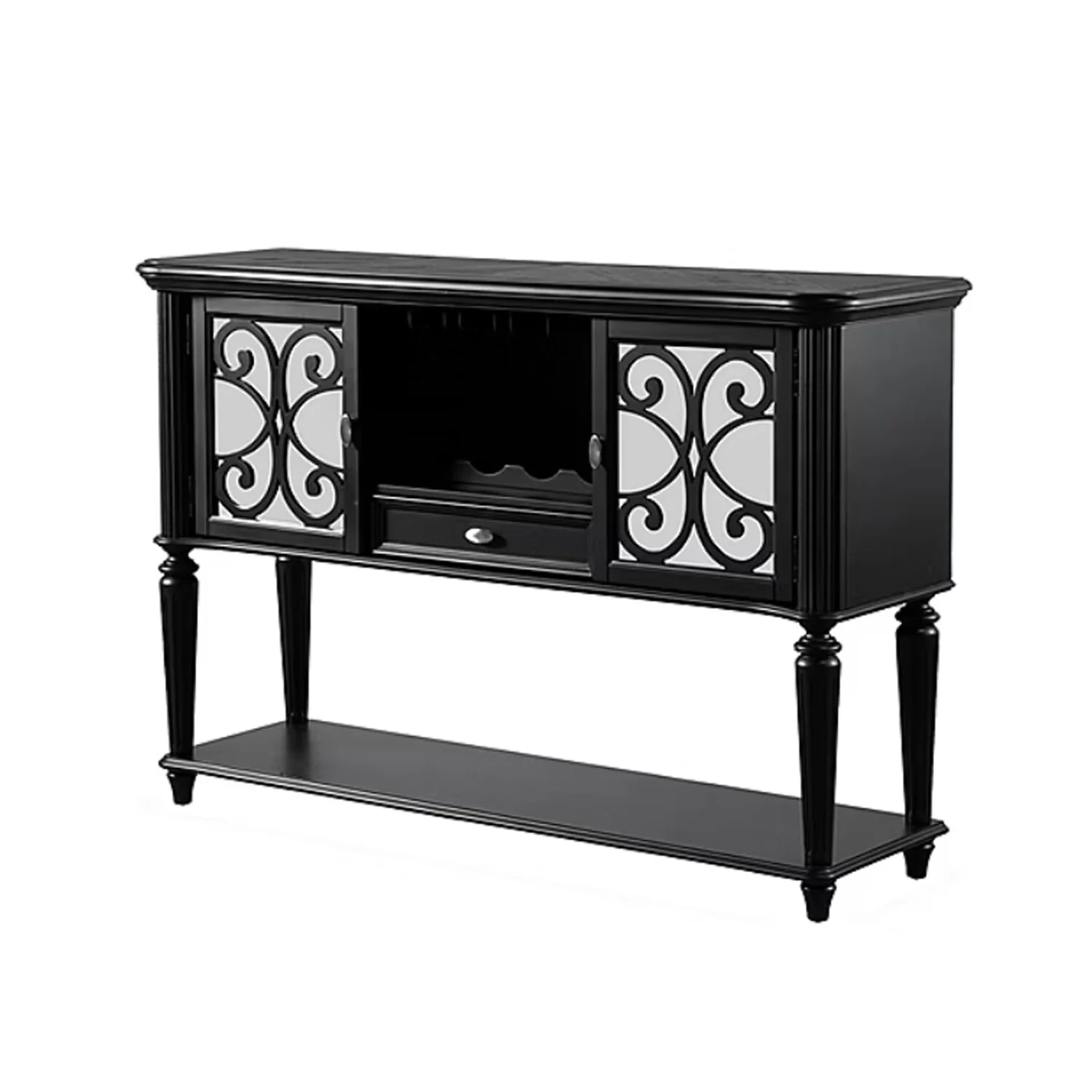 2 Doors and 1 Drawer Wooden Server with Turned Fluted Legs