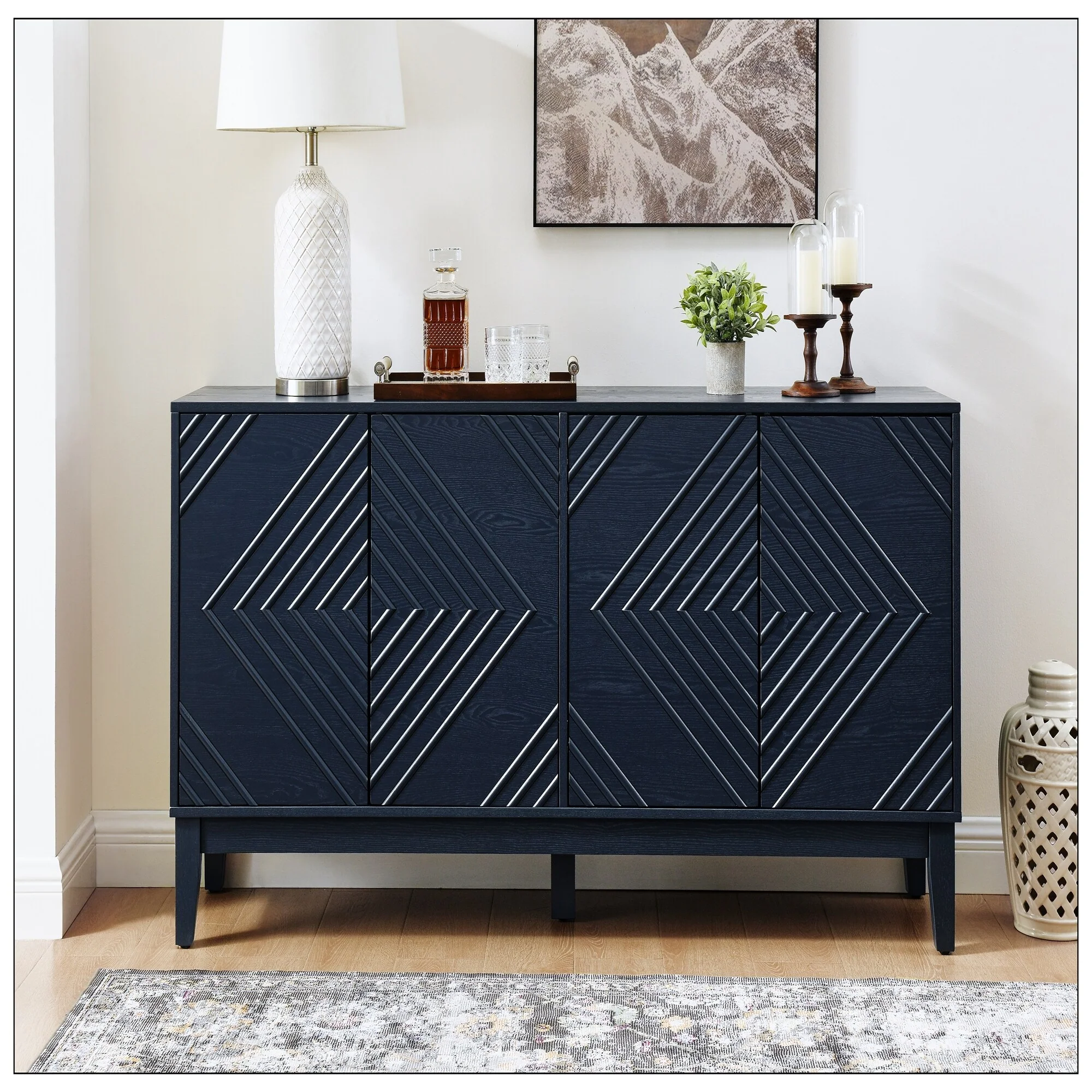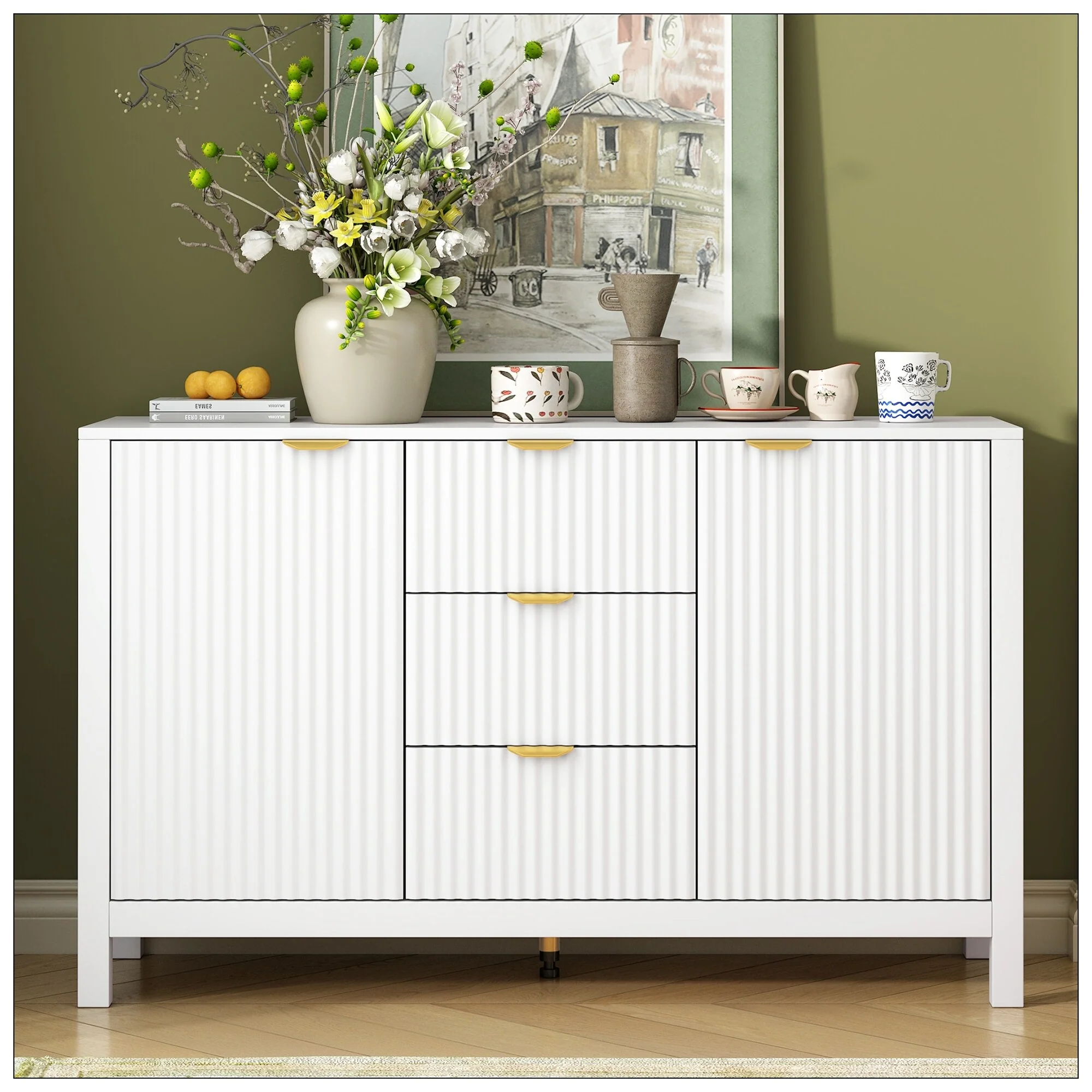 Sideboard Buffet Cabinet with Adjustable Shelves & Silver Handles