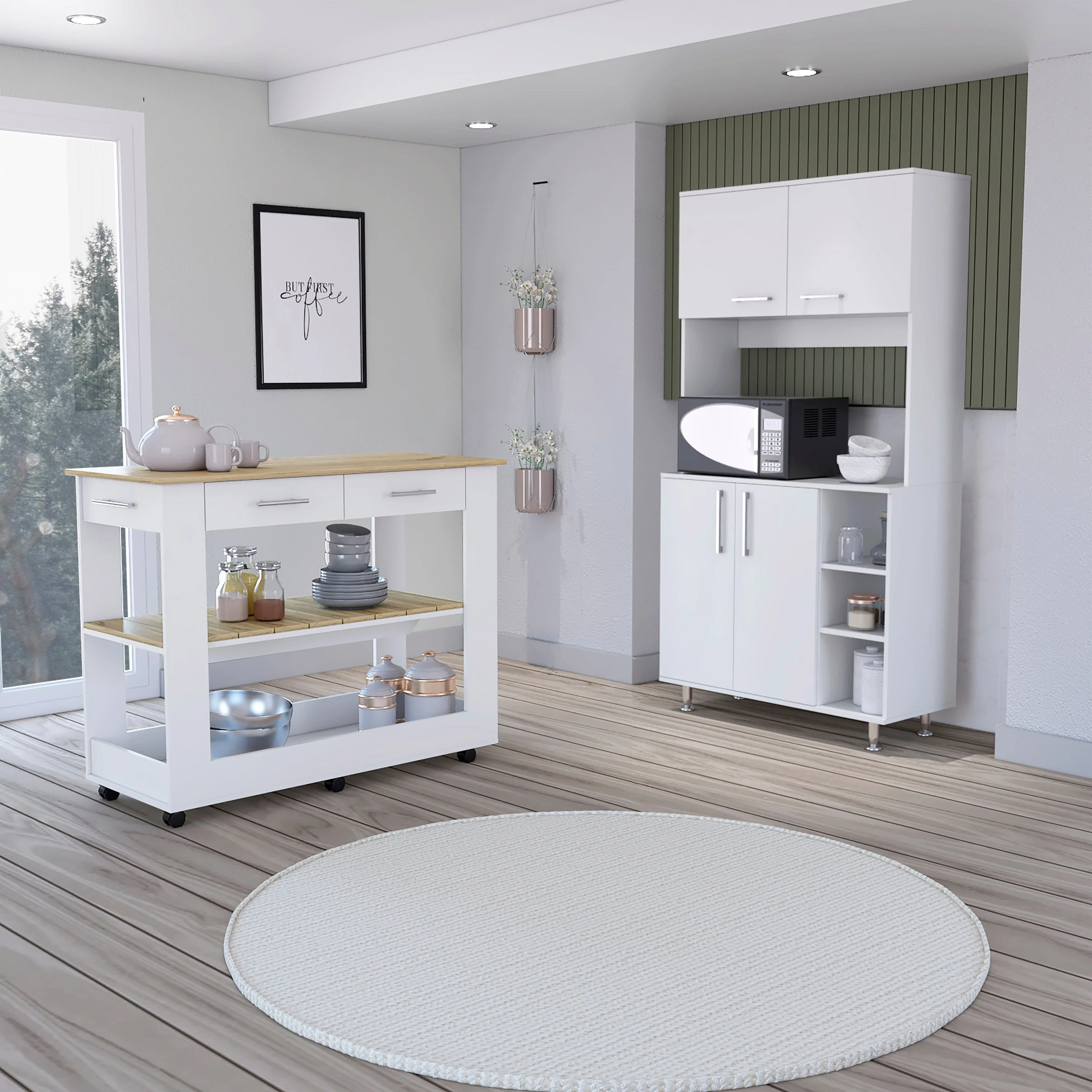 A Mobile Kitchen Island,Storage, Adjustable Shelves, Wheels
