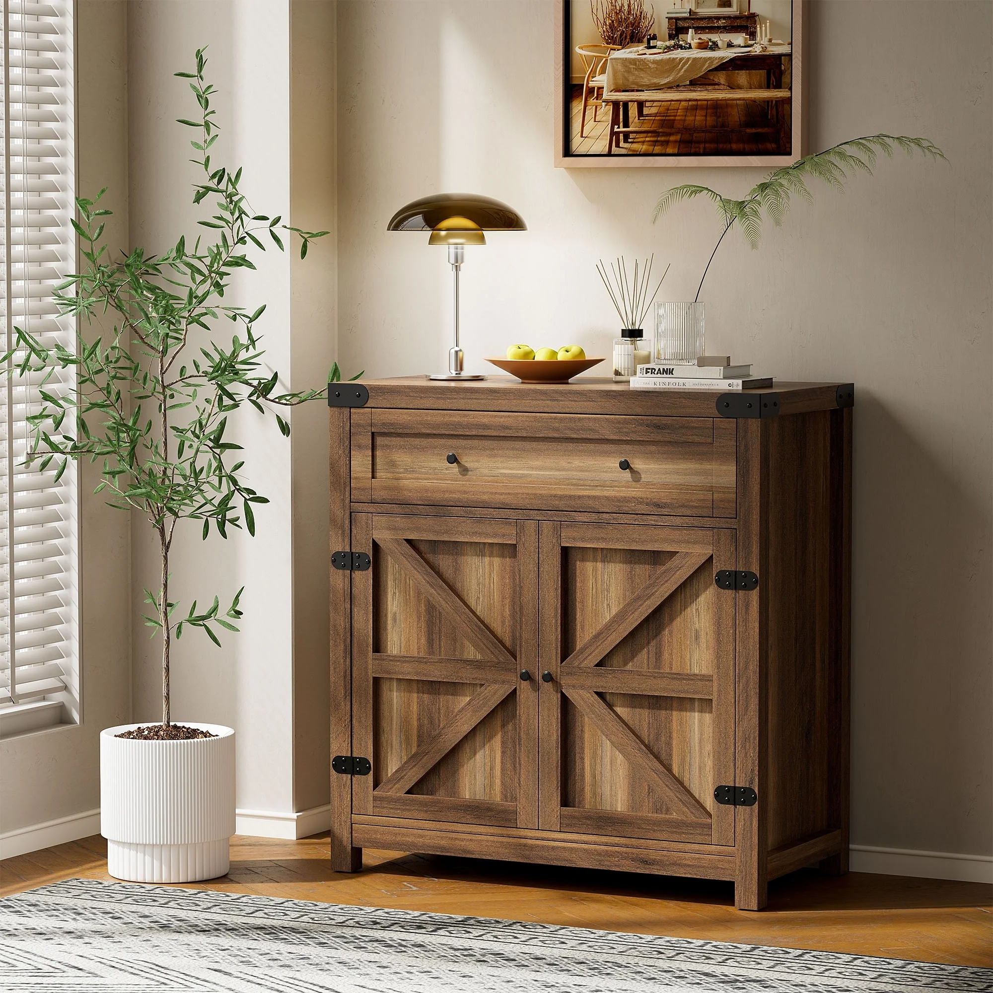 Furniwell Storage Cabinet Modern Farmhouse Kitchen Sideboard