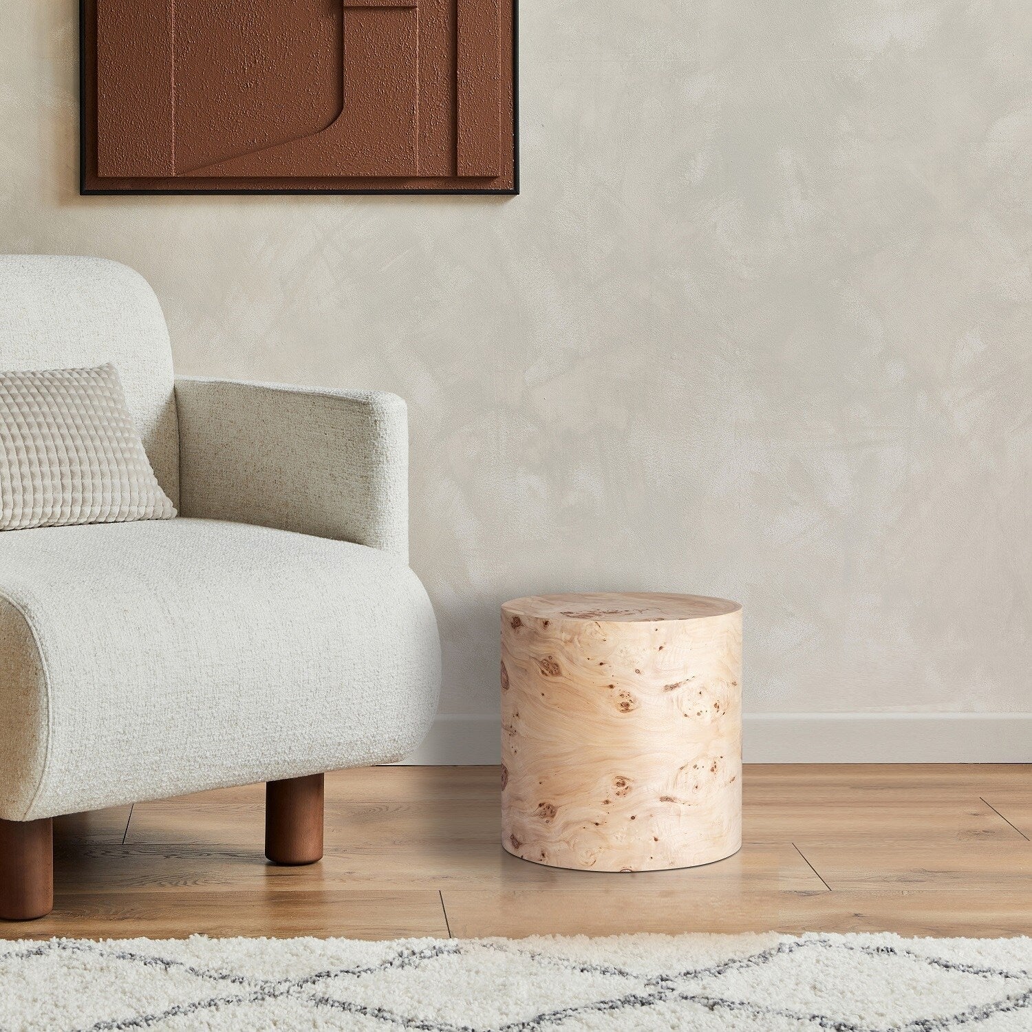 Round Natural Burl Wood Veneer Side Table