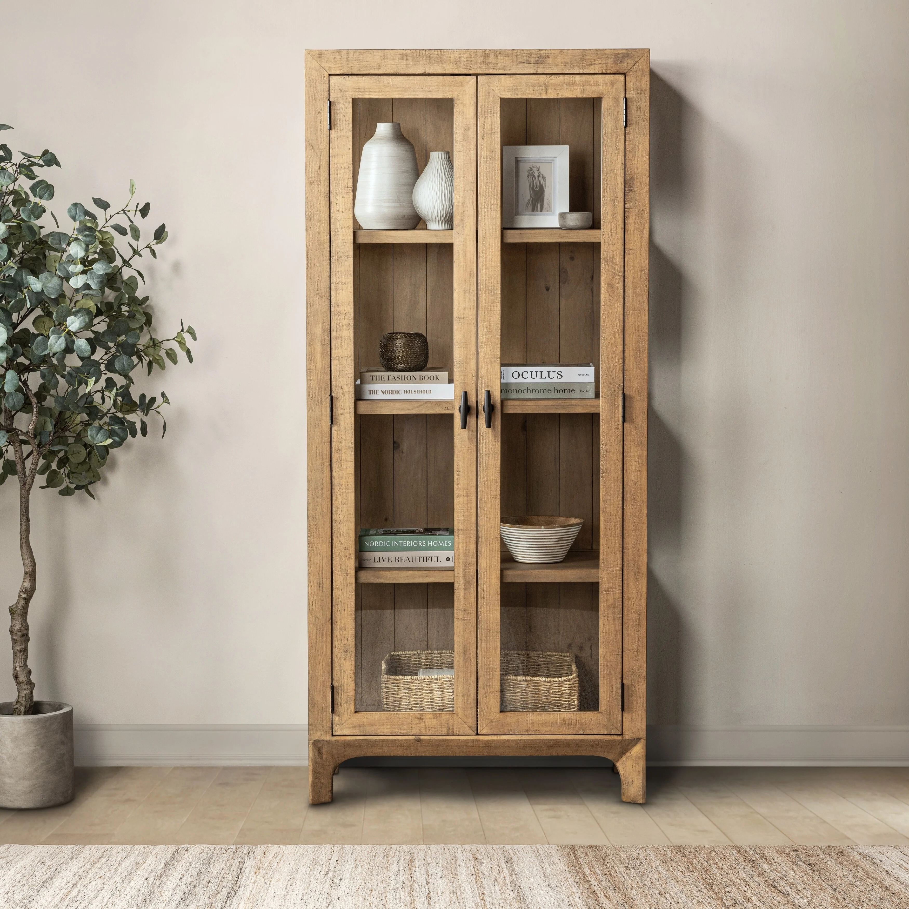 Classic Home Crest 79 Reclaimed Pine Wood Curio Cabinet in Natural