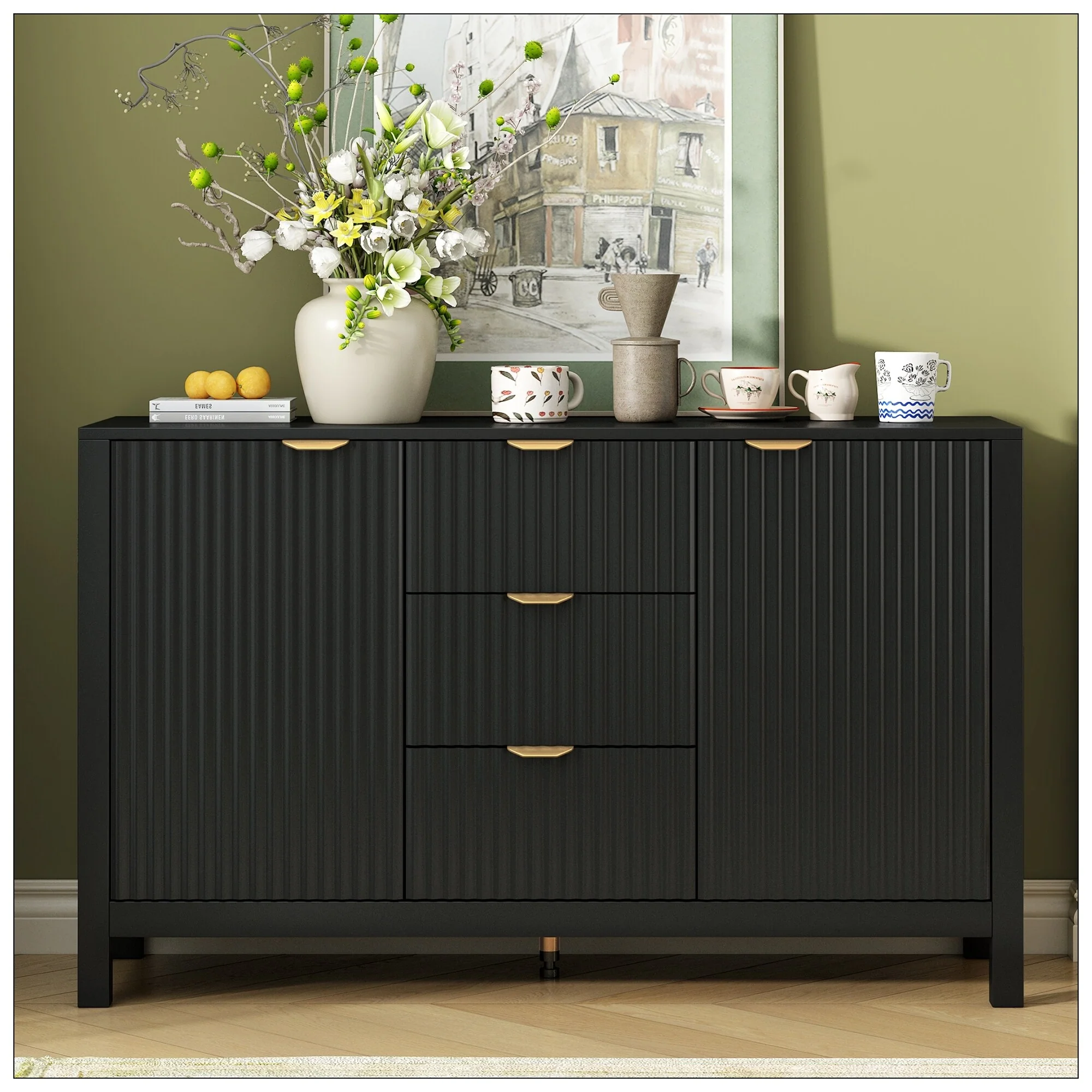 Entryway Cabinet with Wave Design with 3 Adjustable Shelves