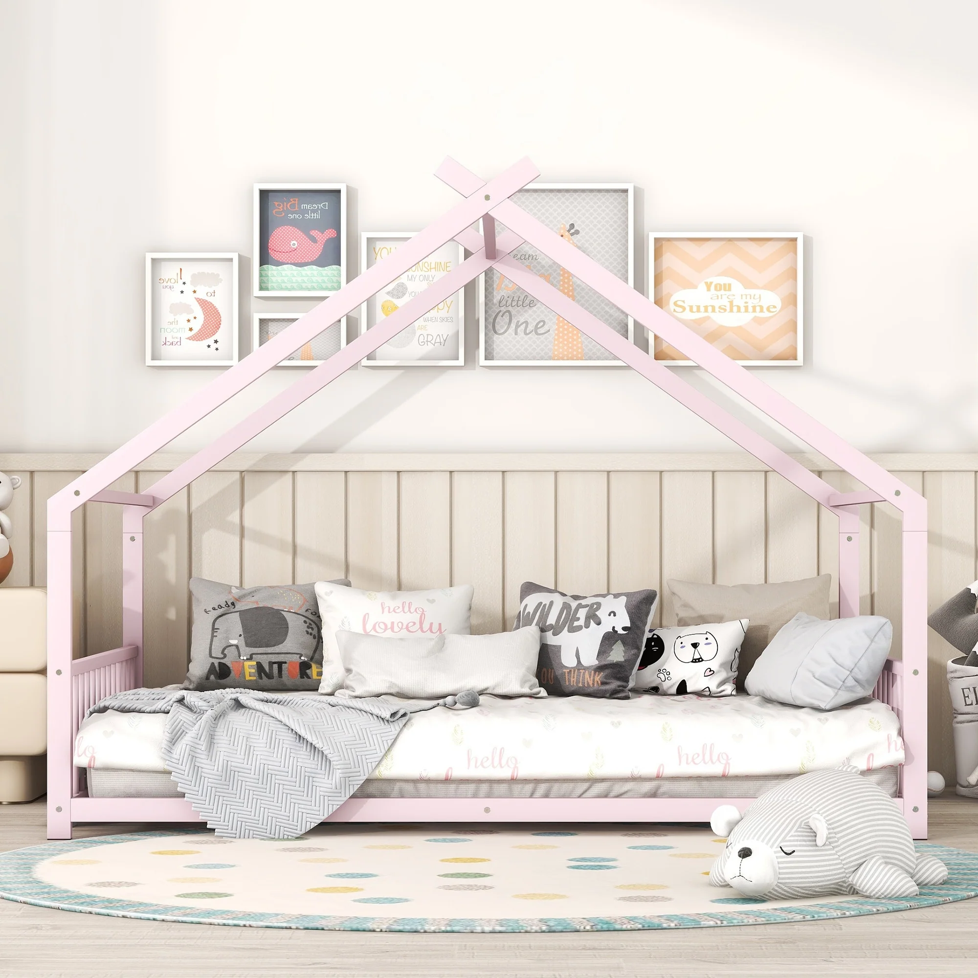 Twin Size Tent Floor Bed with Sturdy Triangle Structure for Kids