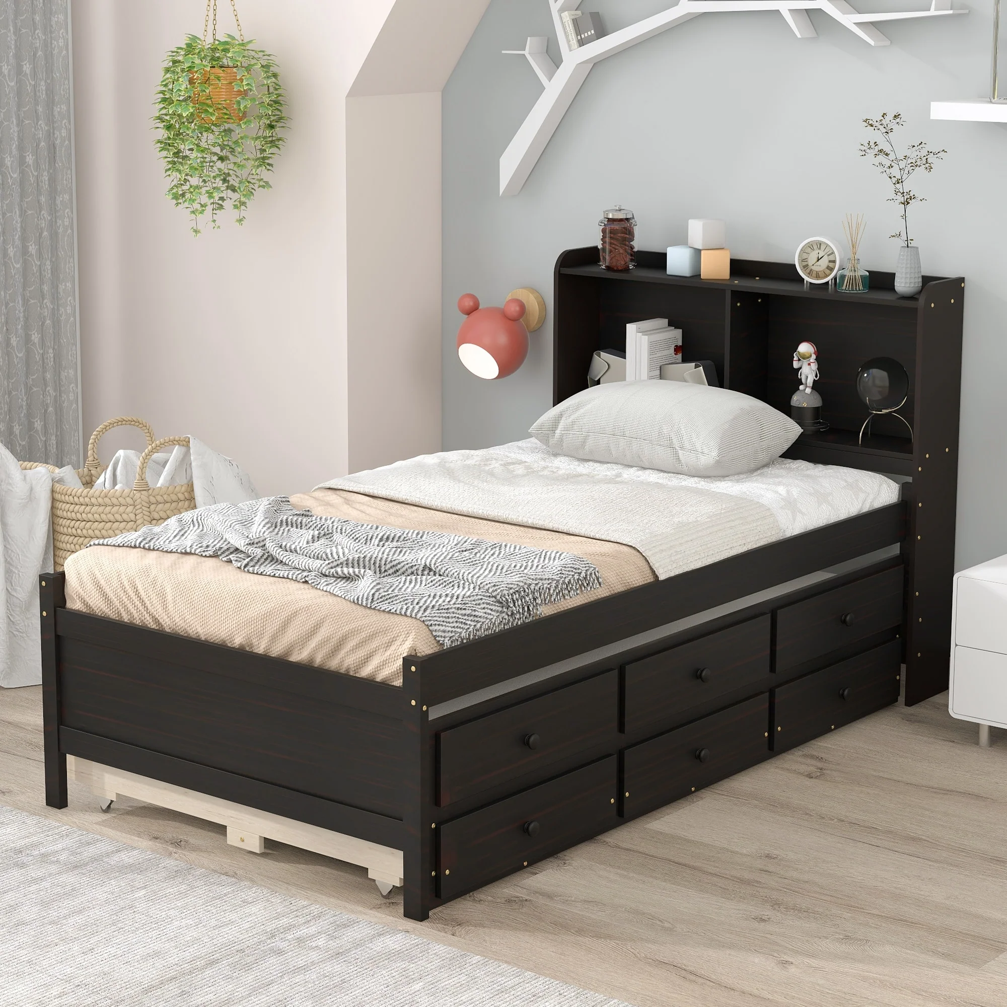 Twin Size Wooden House Bed with Drawers