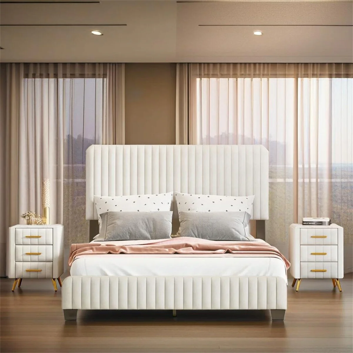 3-Pieces Bedroom Sets Platform Bed with Nightstand and Dresser