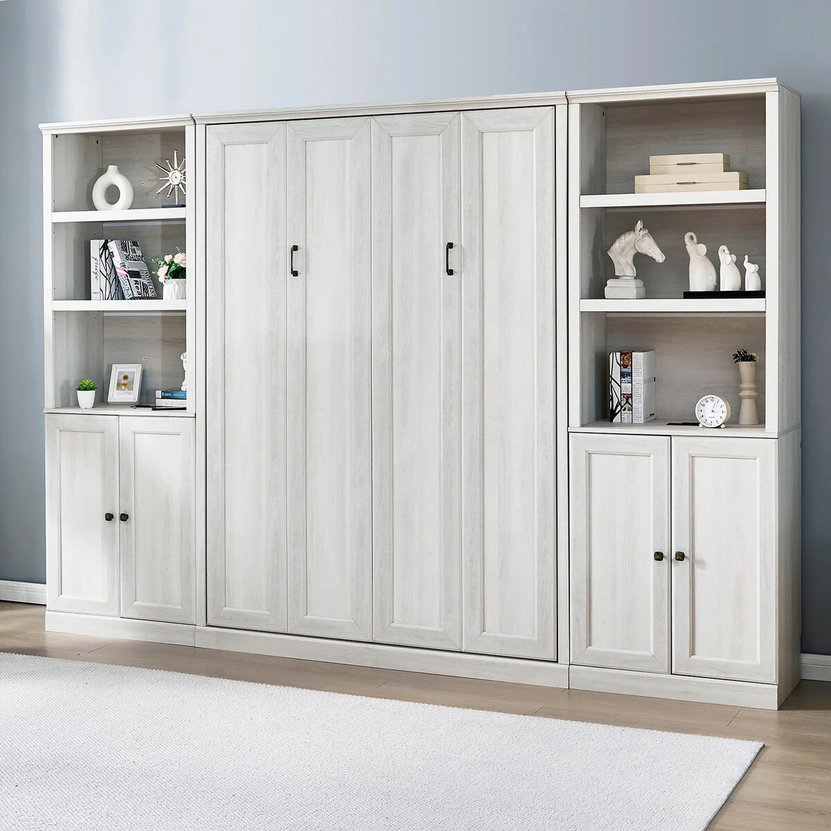 Full Size Murphy Bed with 2 Side Cabinet Storage Shelf
