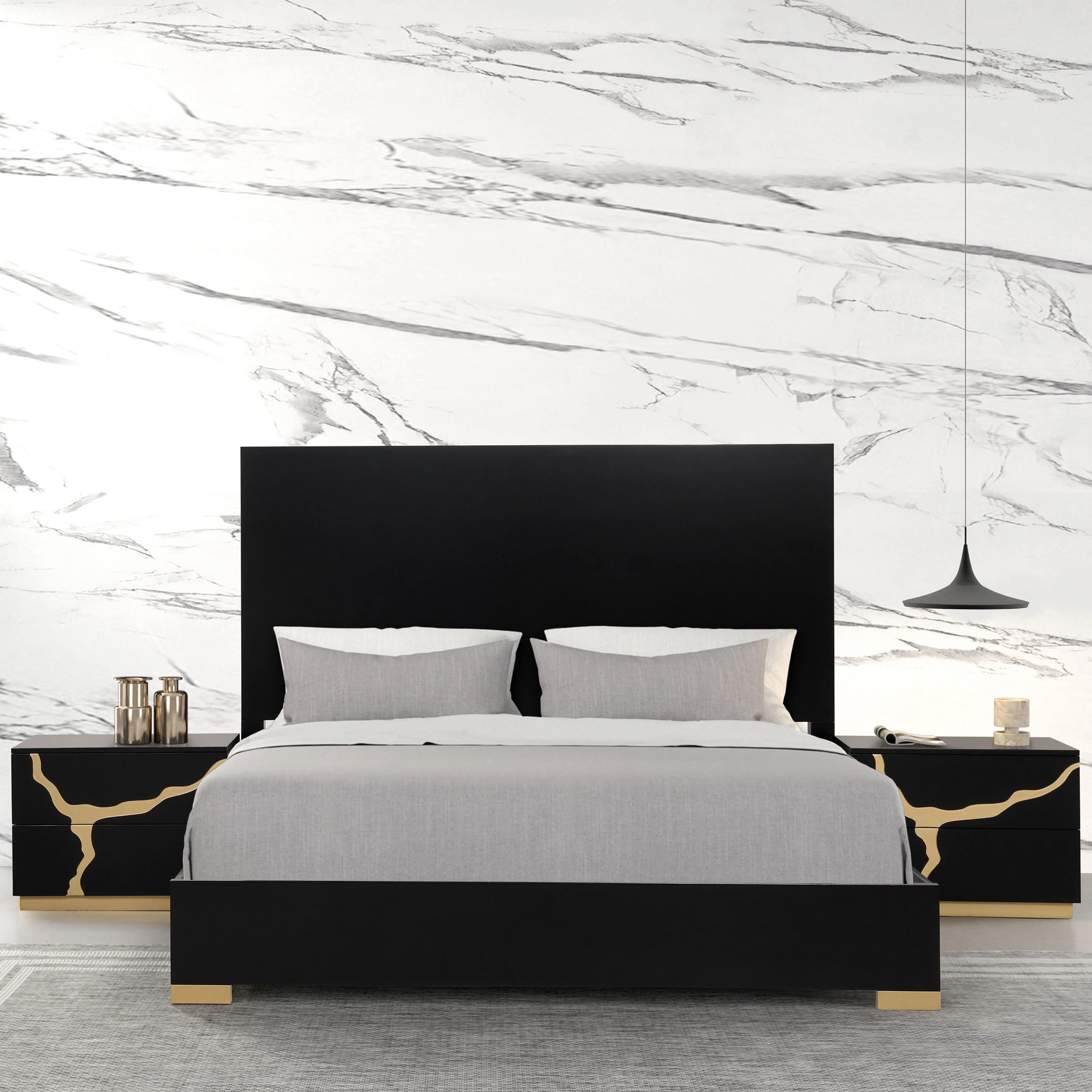 Tamsin Black and Metallic 6-piece Platform Bedroom Set