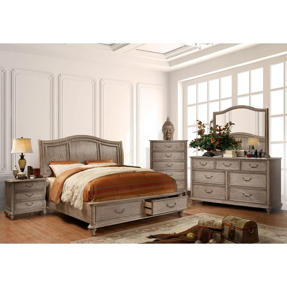 Aimon 4 Piece Gray Rustic Panel Bedroom Set