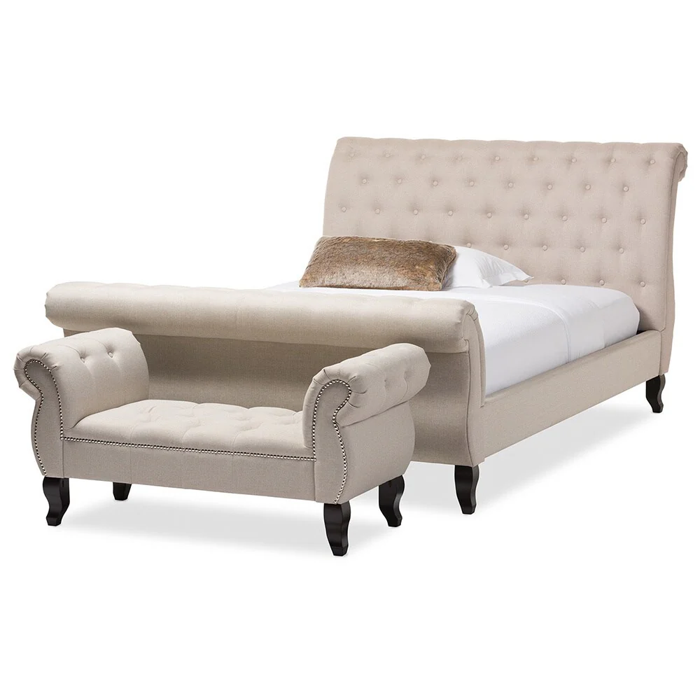 Baxton Studio Yost Light Beige Modern Bed with Light Beige Bench
