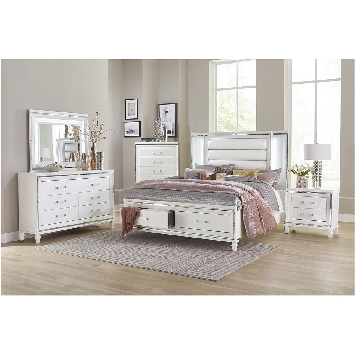 Evonne 6 Piece Gray LED Upholstered Panel Bedroom Set