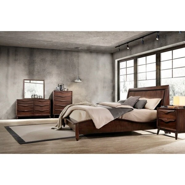 Abbyson Alton Brown Wood Mid Century 5 Piece Bedroom Set