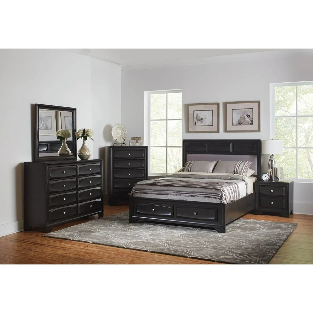 Isabel Black 5-piece Storage Bedroom Set with 2 Nightstands