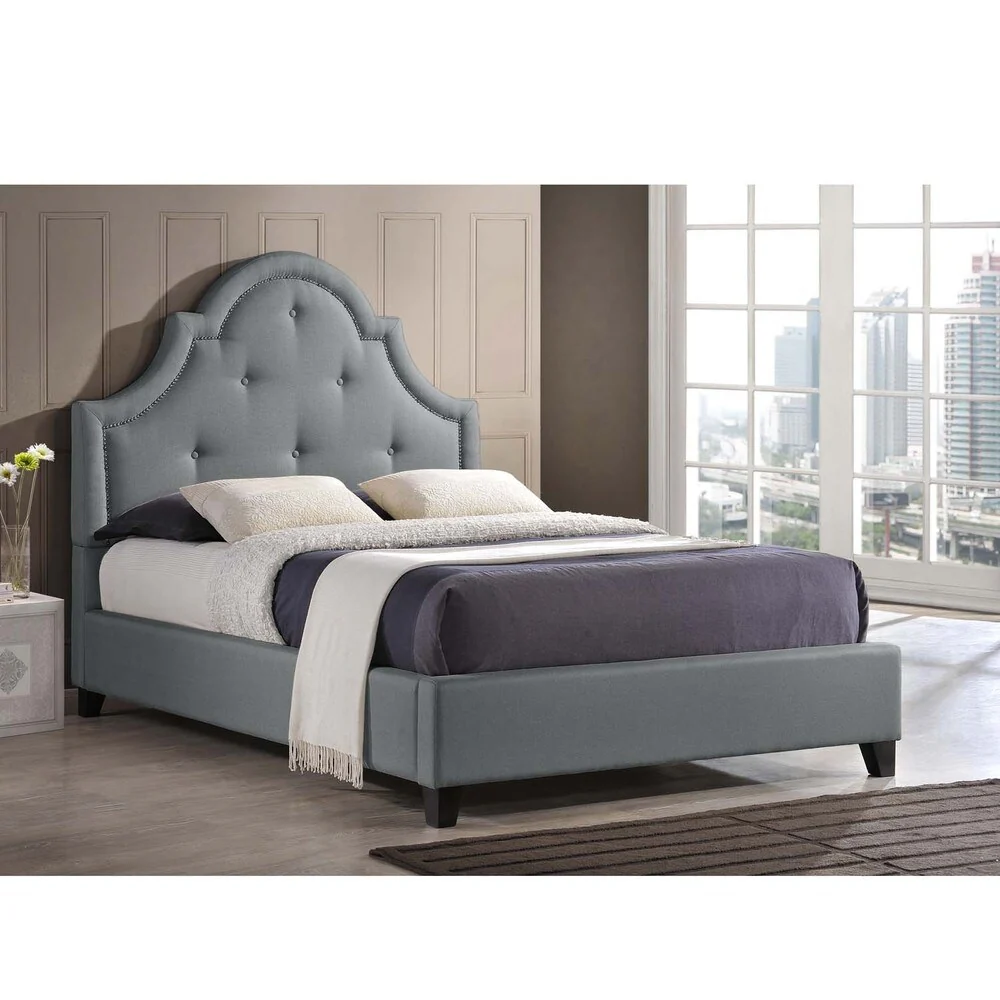 Baxton Sudio Hamlin Grey Linen Bed with Bed Bench