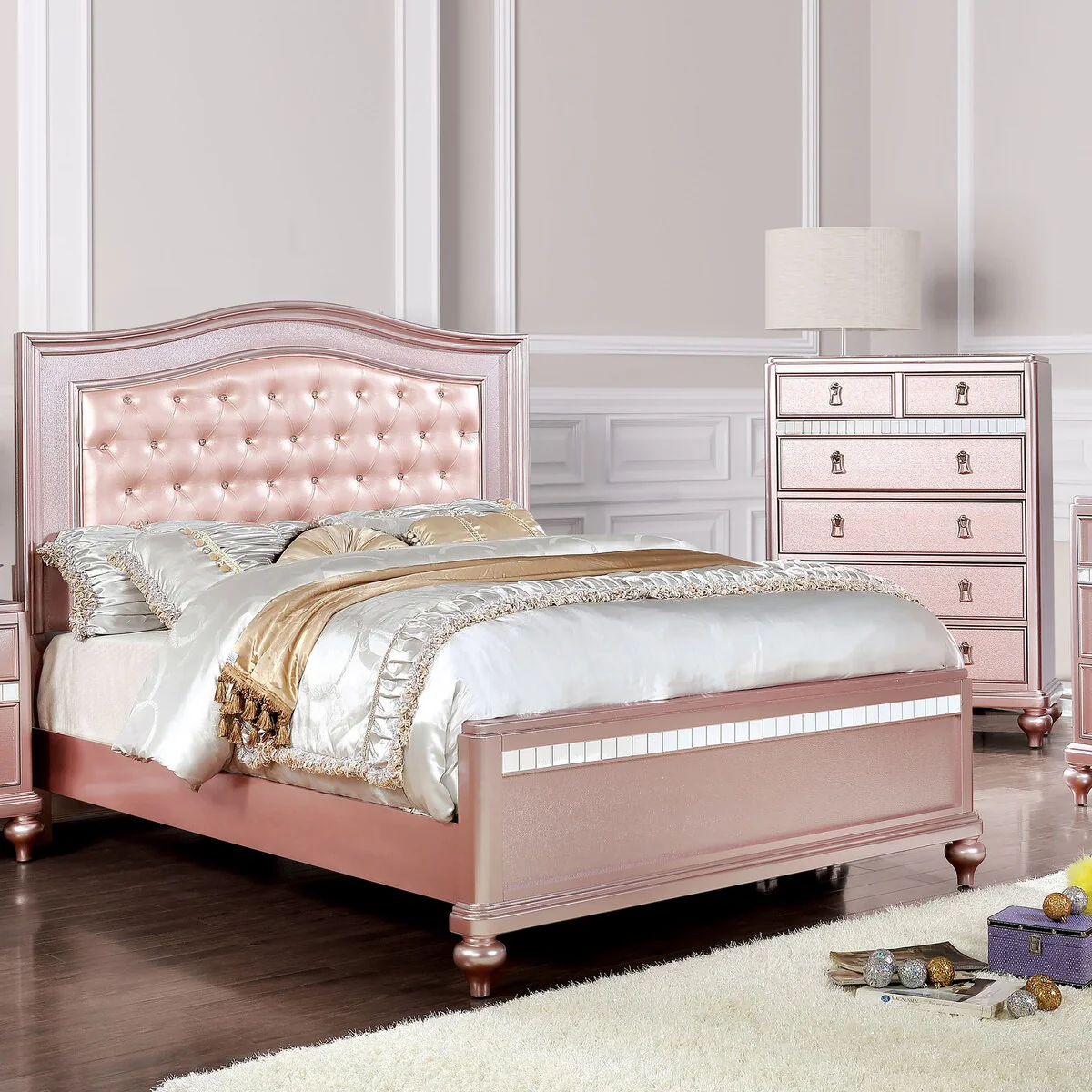 Isabella Metallic 5-piece Upholstered Bedroom Set with 2 Nightstands