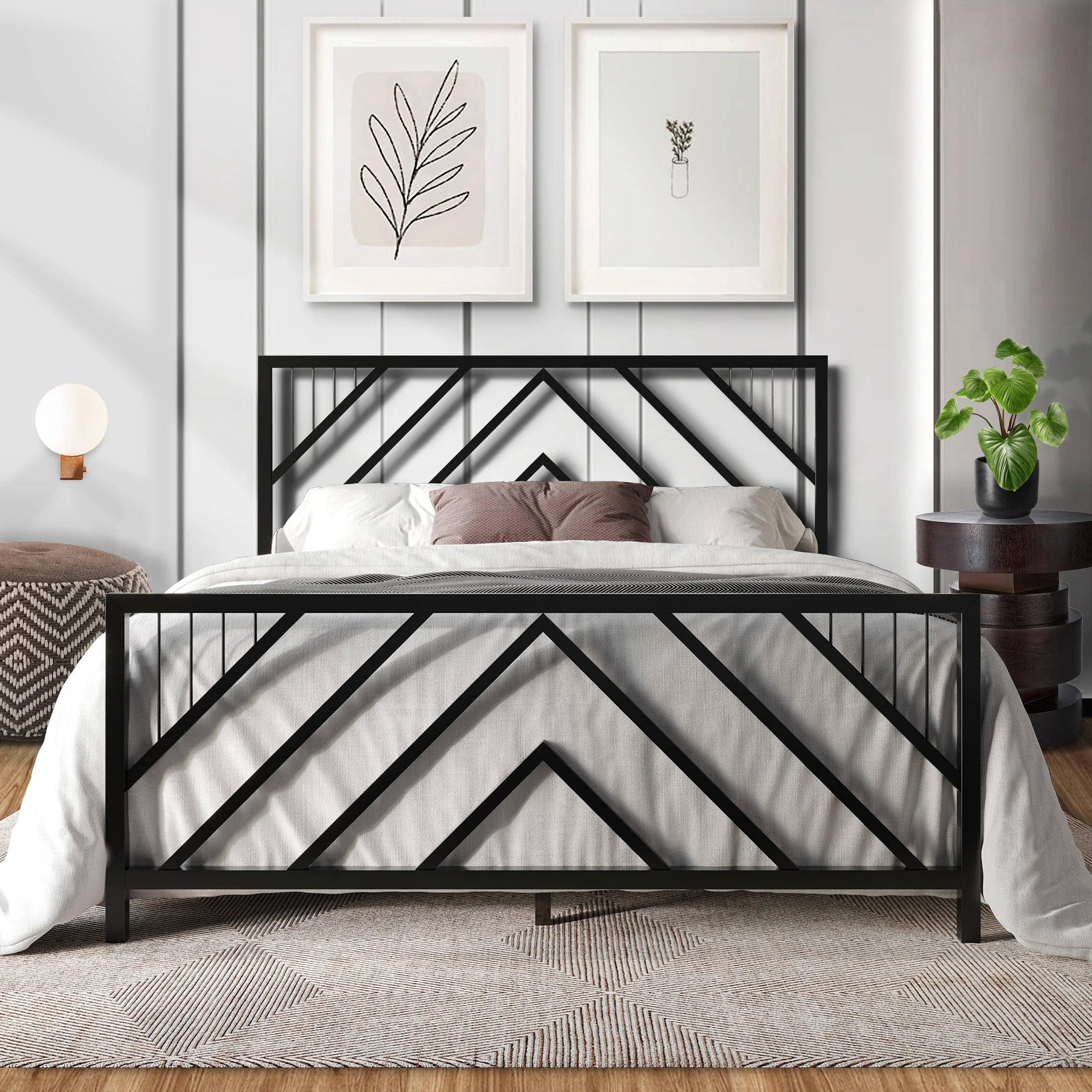 CraftPorch Classic Geometric Slat Metal Platform Bed