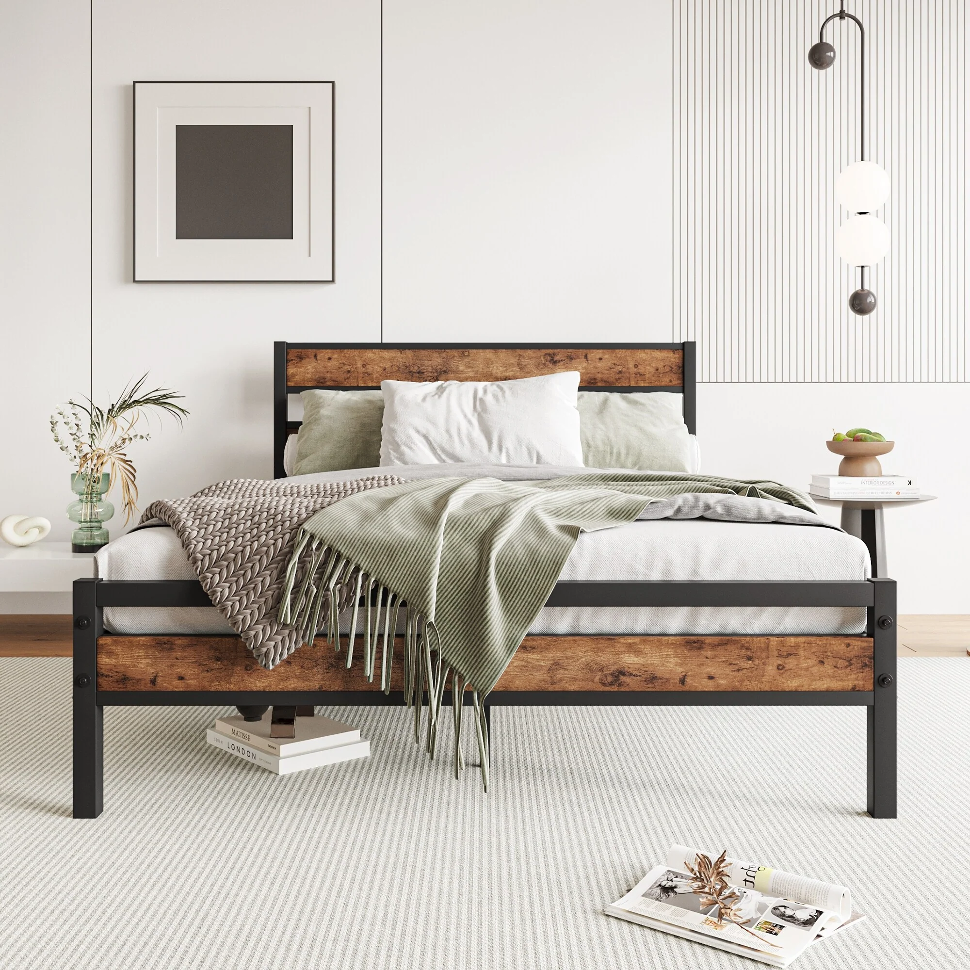 Full Size Black Metal and Rustic Wood Platform Bed