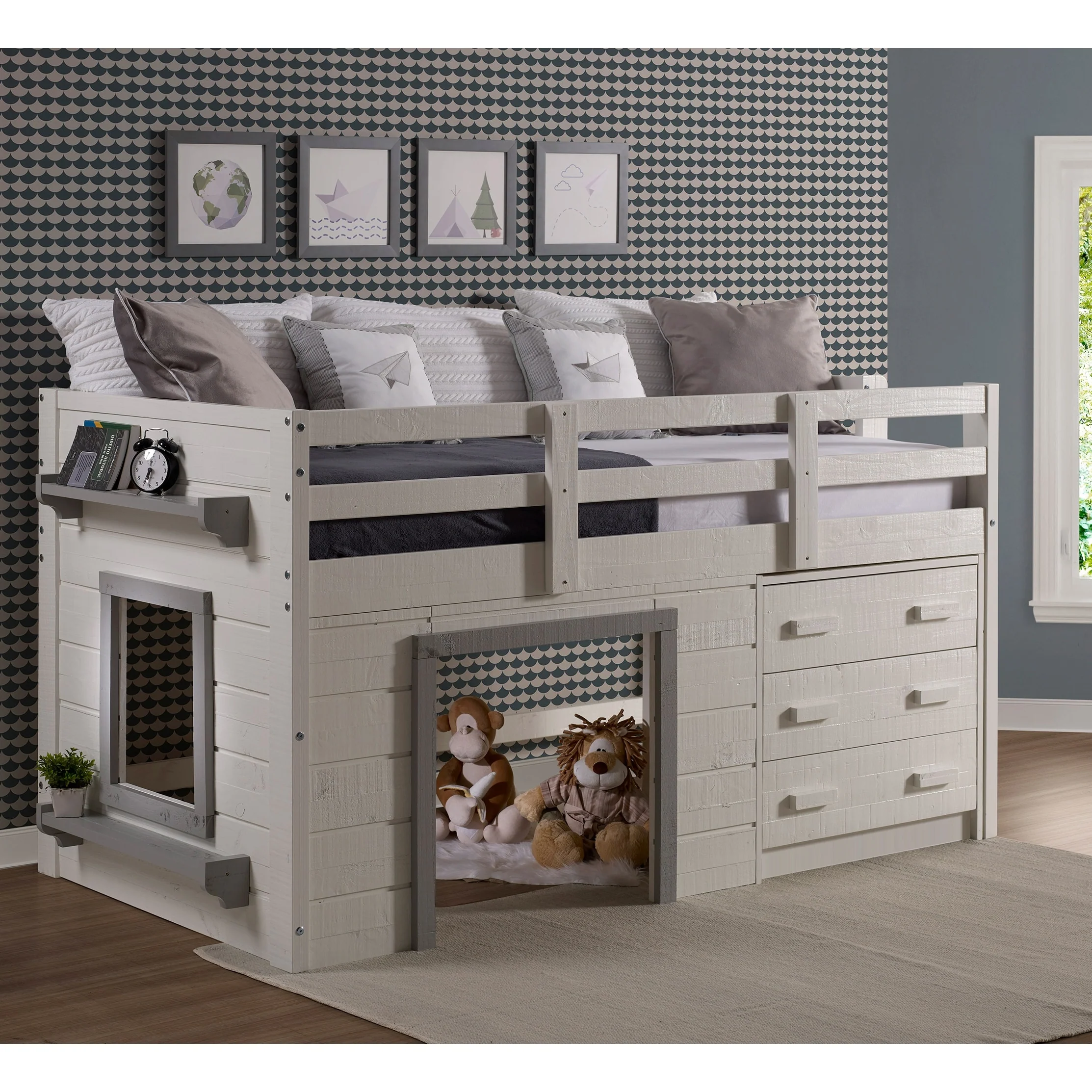 Sweet Dreams Twin-sized White/Grey Low Loft Bed
