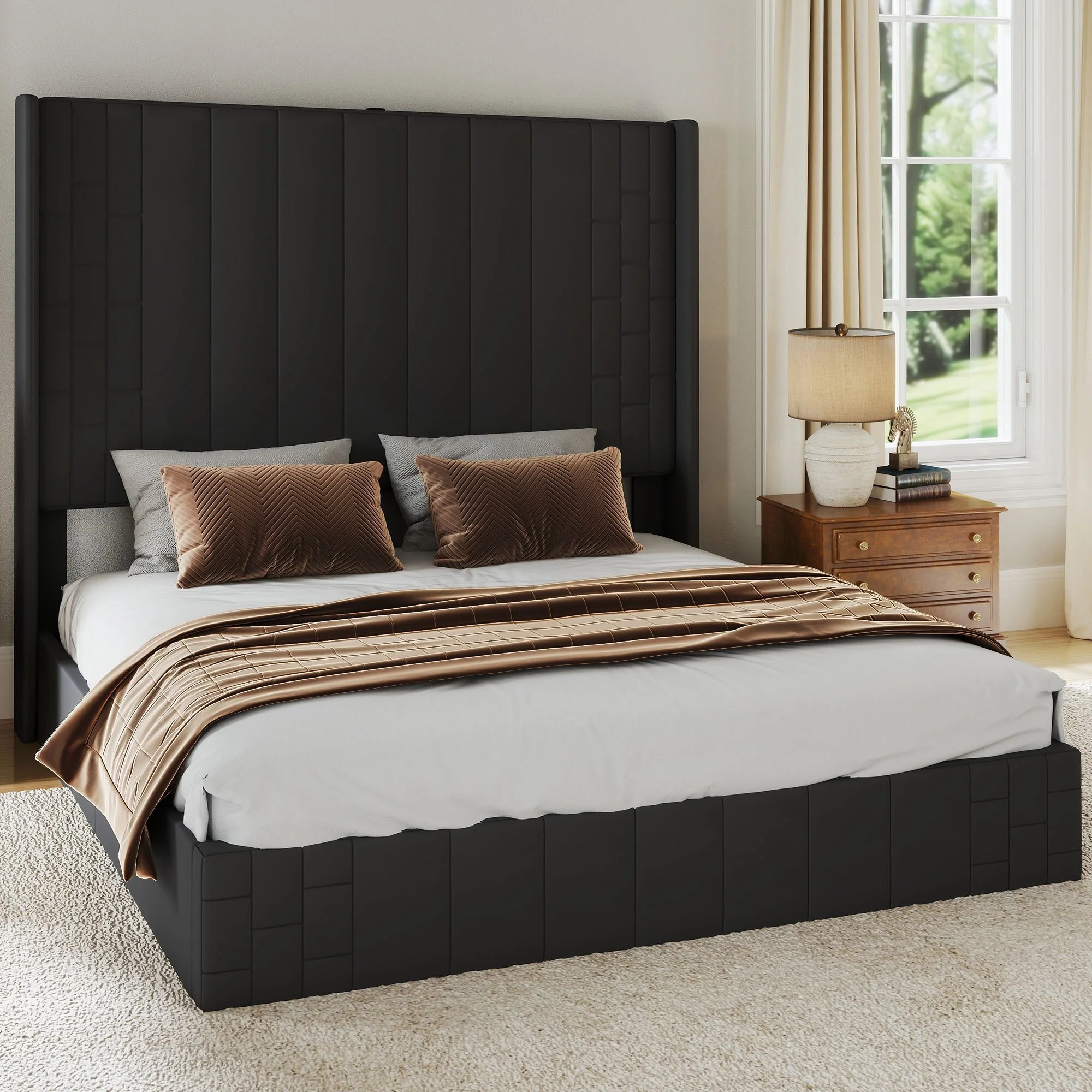 Moasis Wingback Upholstered Lift Up Storage Platform Bed