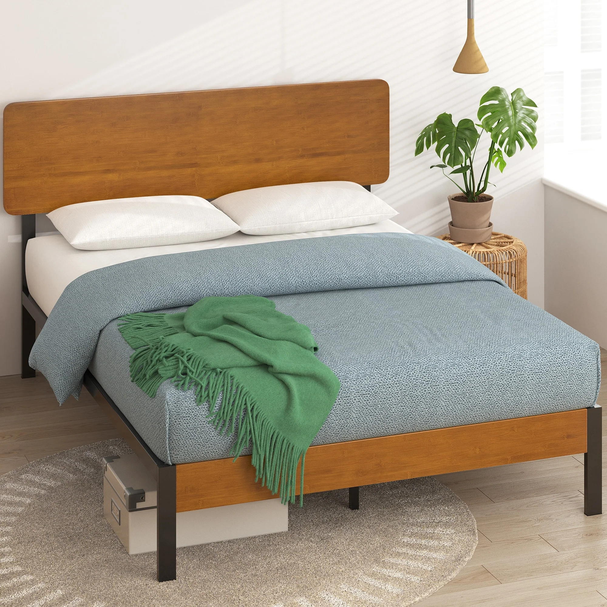 Queen Size Metal Bed Frame with Headboard Black