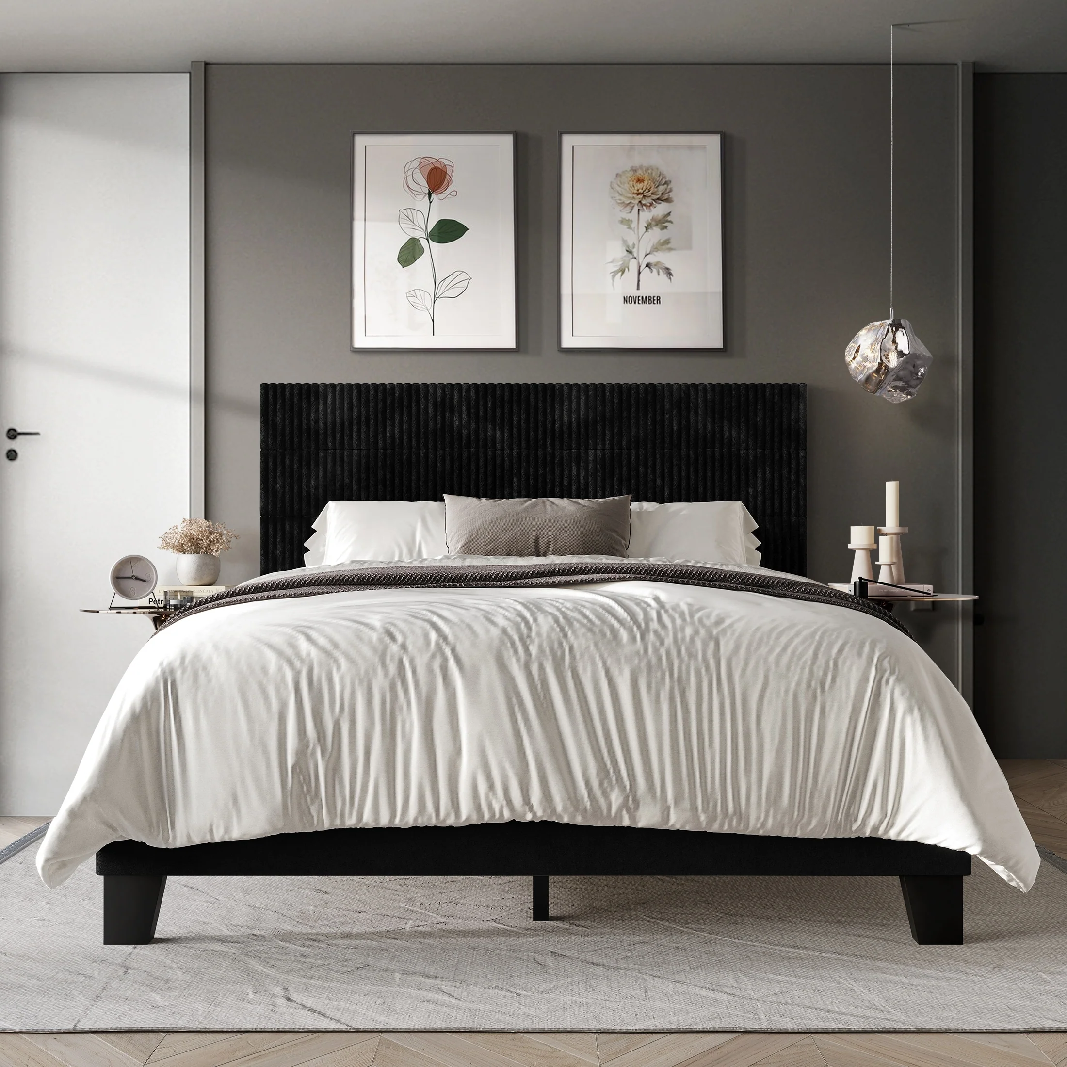 CraftPorch Corduroy Mid-Century Modern Velvet Platform Bed