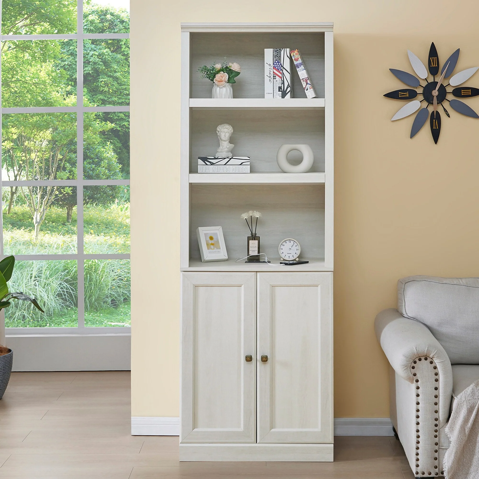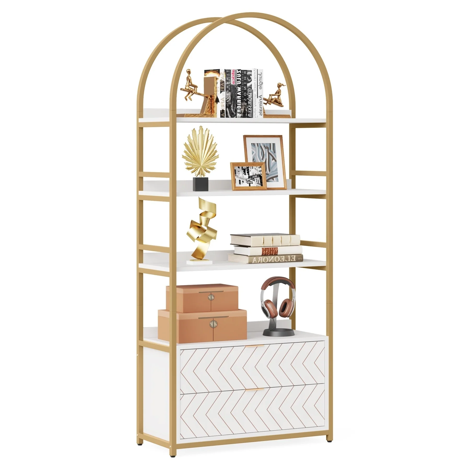 DH BASIC Modern Geometric 8-Shelf Open-Back Bookcase by Denhour