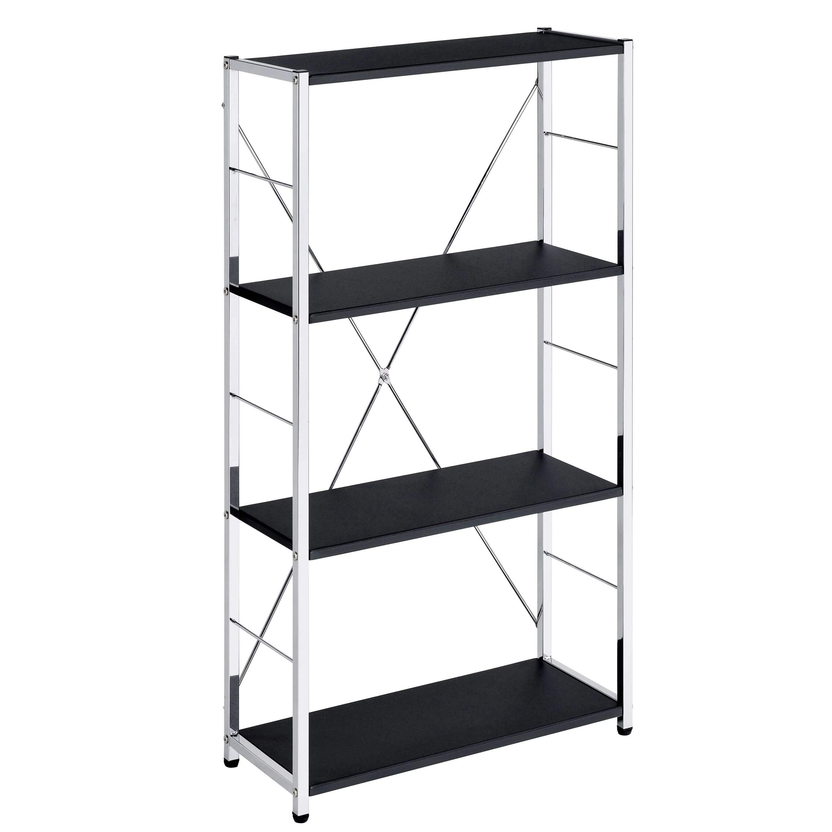 Black and Chrome 4-Tier Rectangular Bookshelf