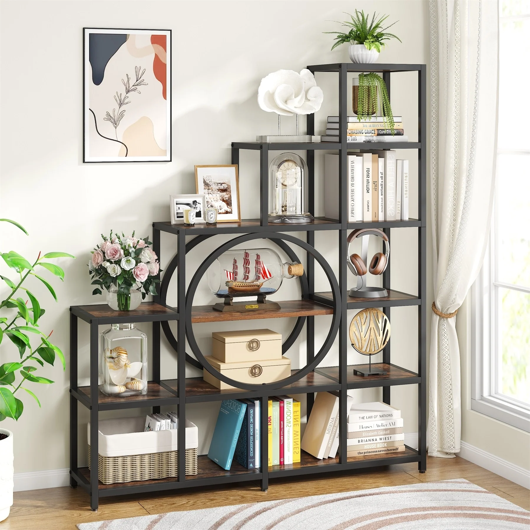 6 Tier Etagere Step Bookcase, 16 Shelves Freestanding Bookshelf
