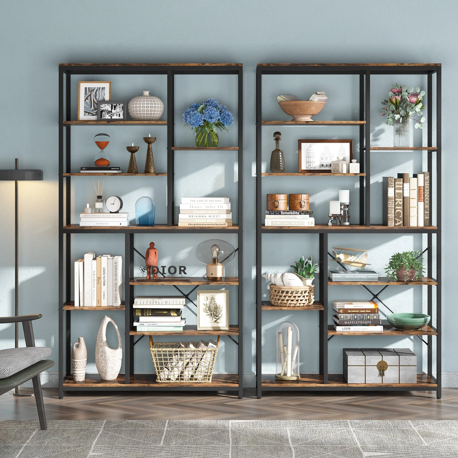 8-Tier Staggered Bookcase, Modern Freestanding Open bookshelf