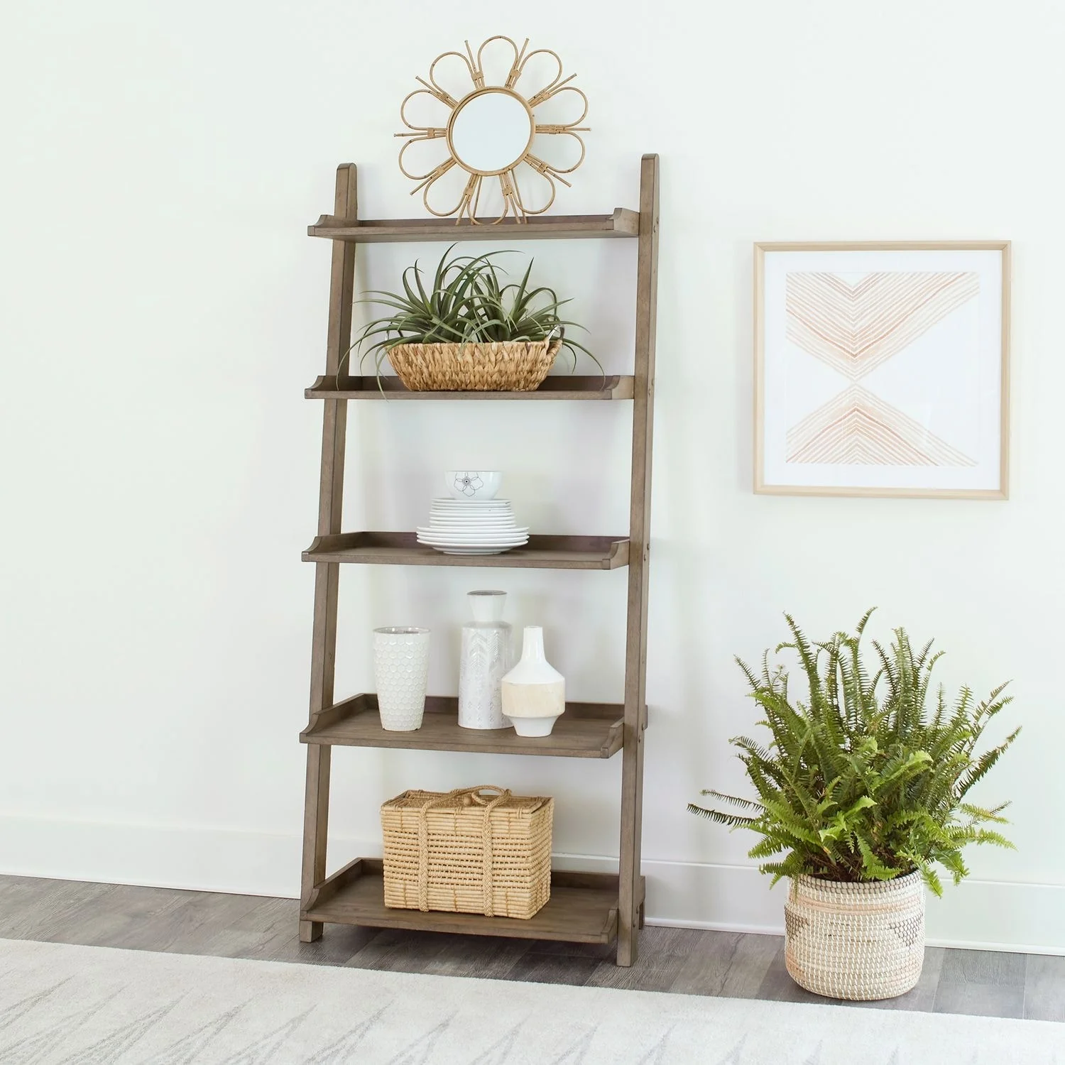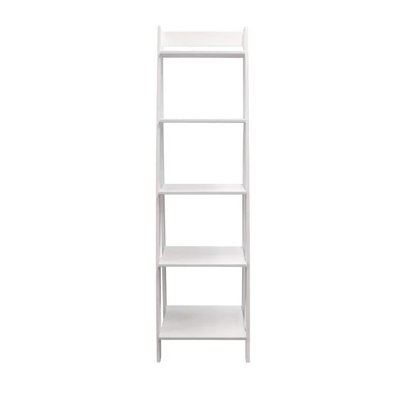 Adeptus Solid Wood 5 Shelf Ladder Bookshelf Solid White