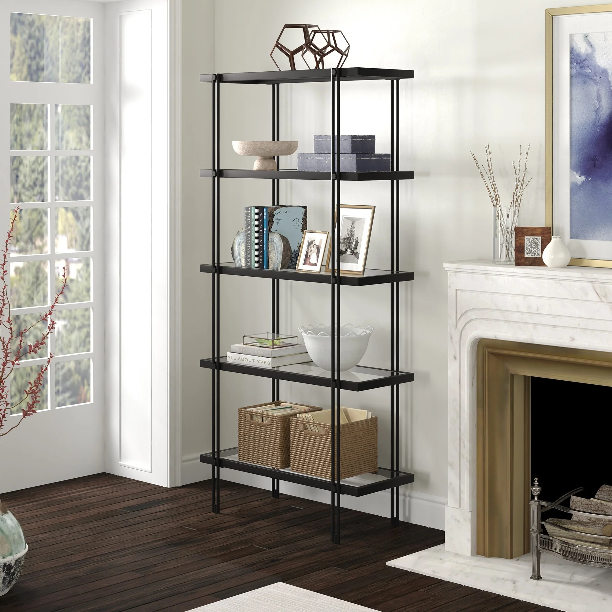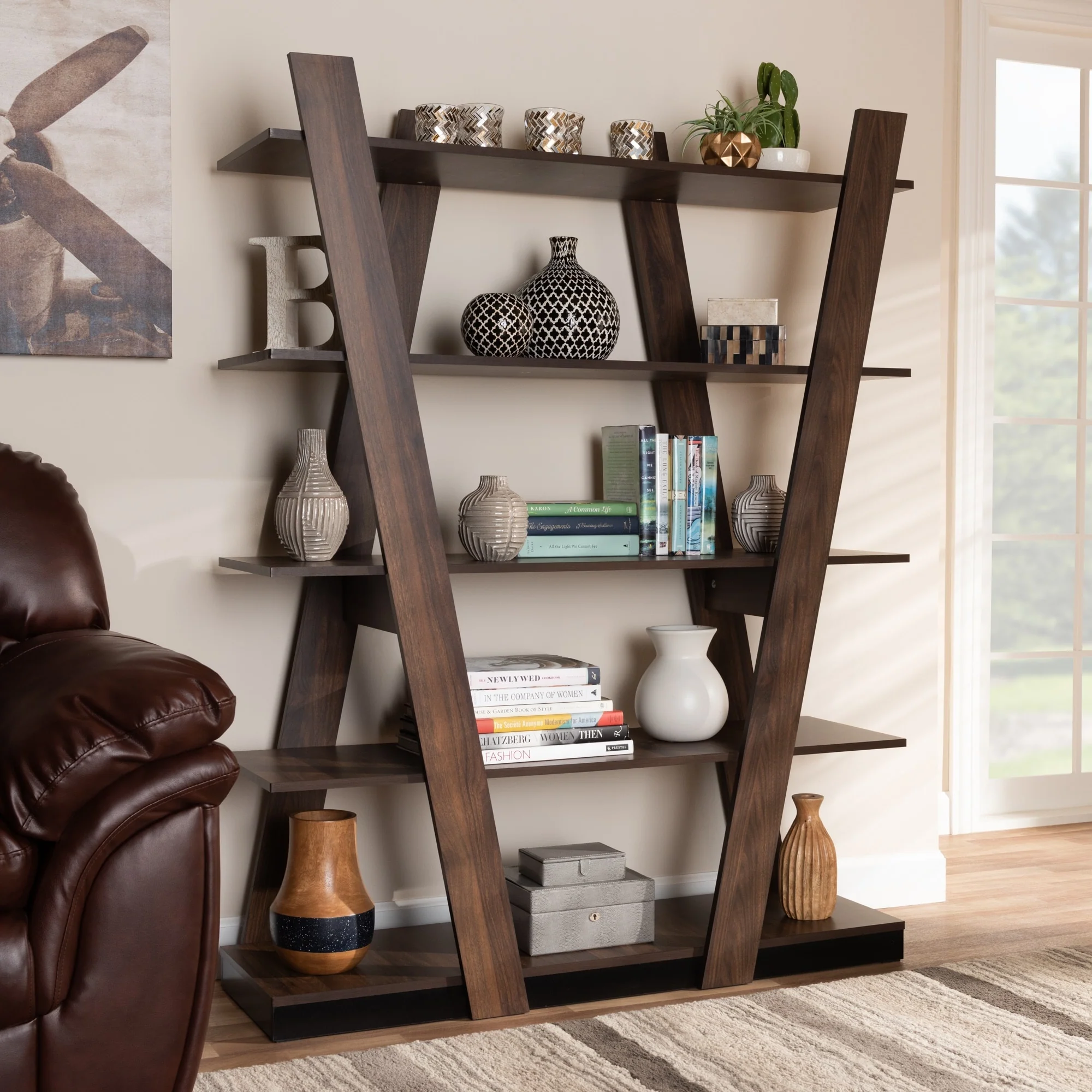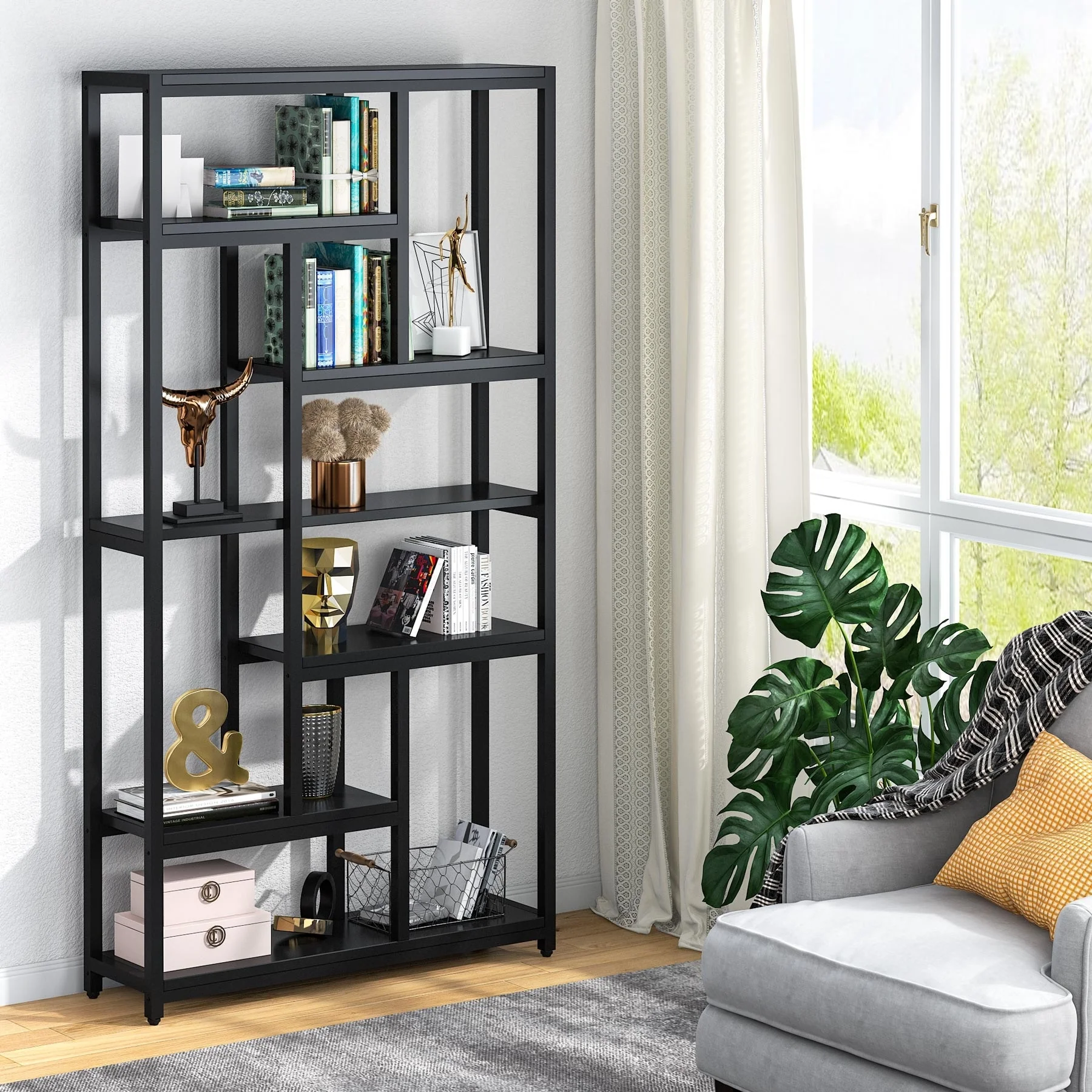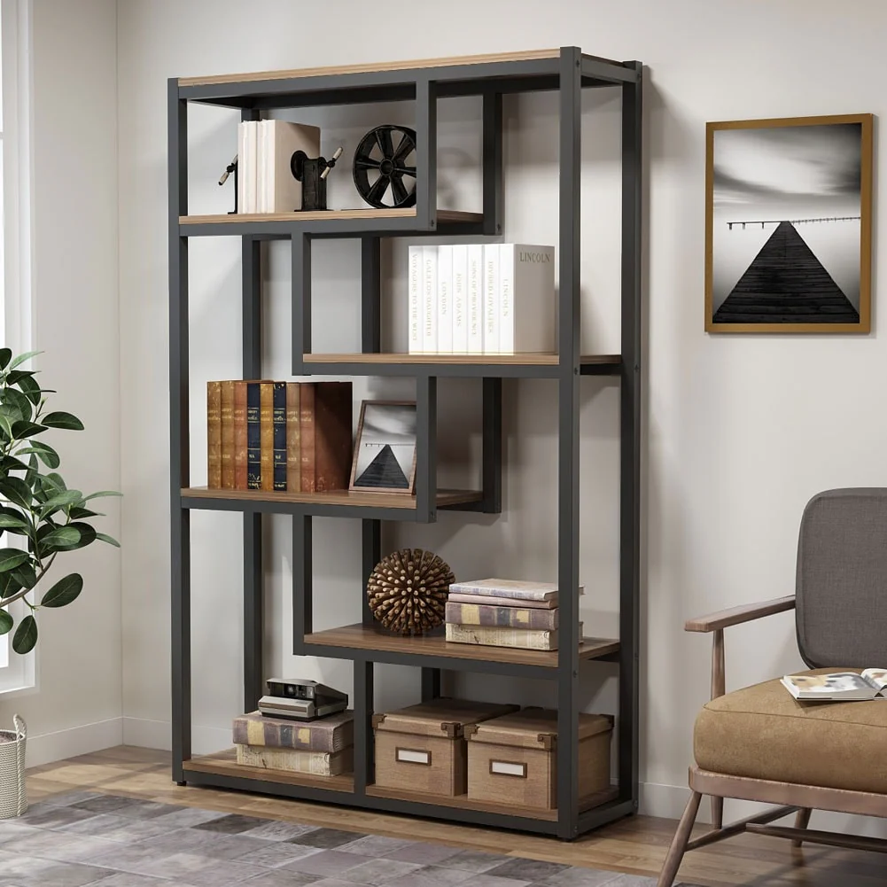 6-Tier Etagere Bookcase, Industrial Geometric Bookshelf