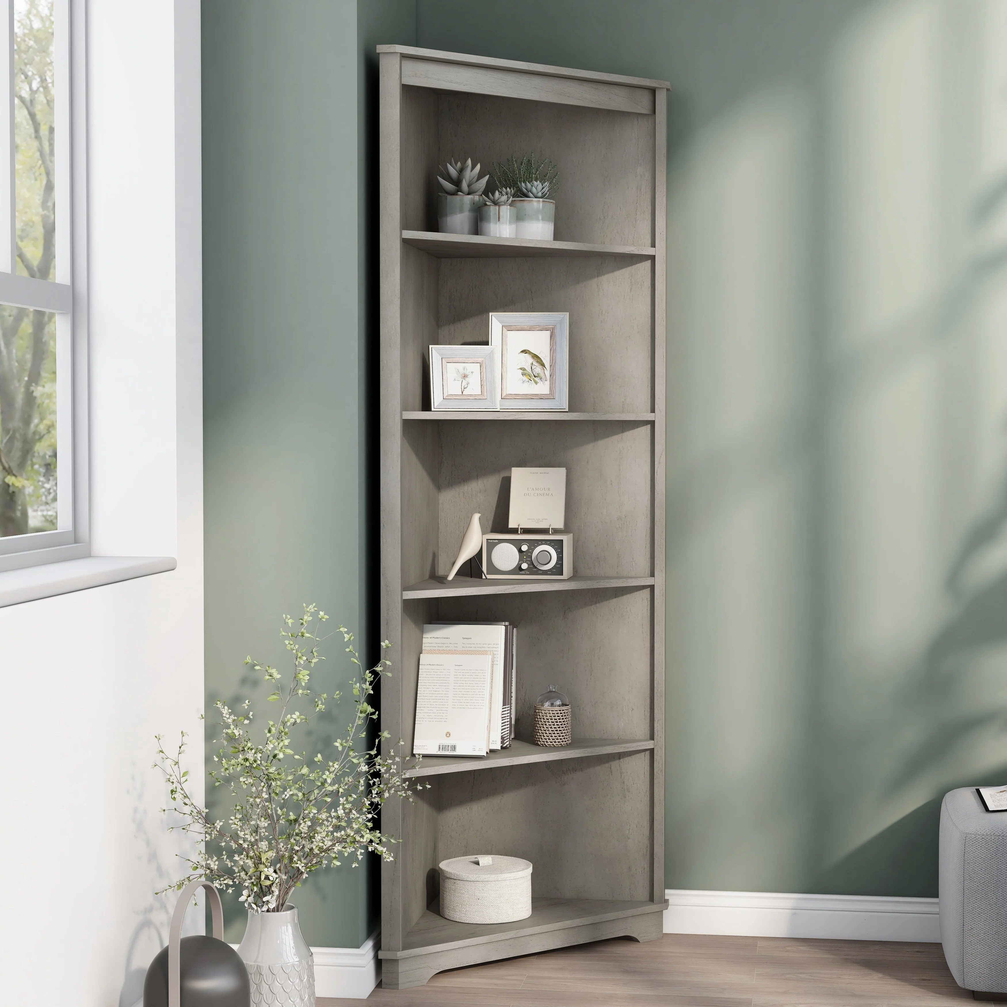 Bush Furniture Universal 15W Tall Corner Bookshelf Storage