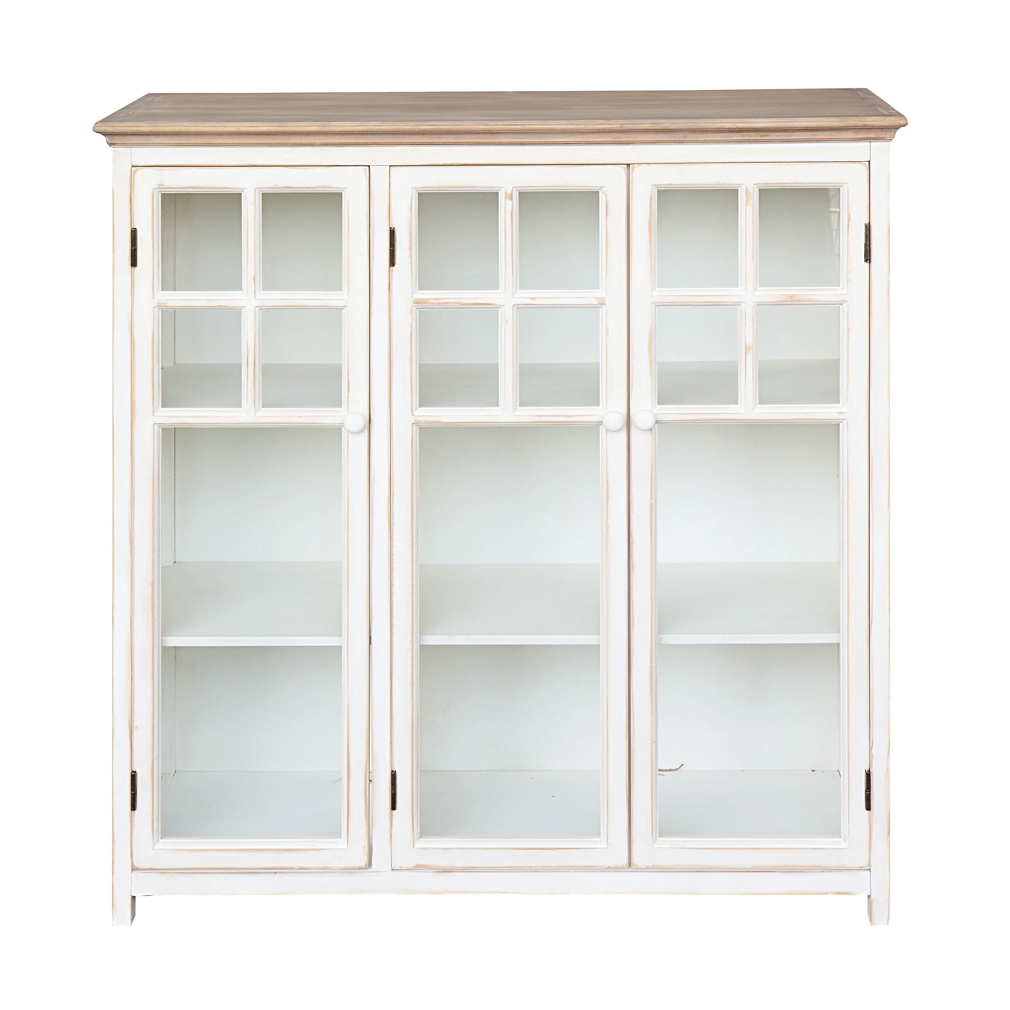 Wood Cabinet with 3 Shelves and 3 Glass Doors
