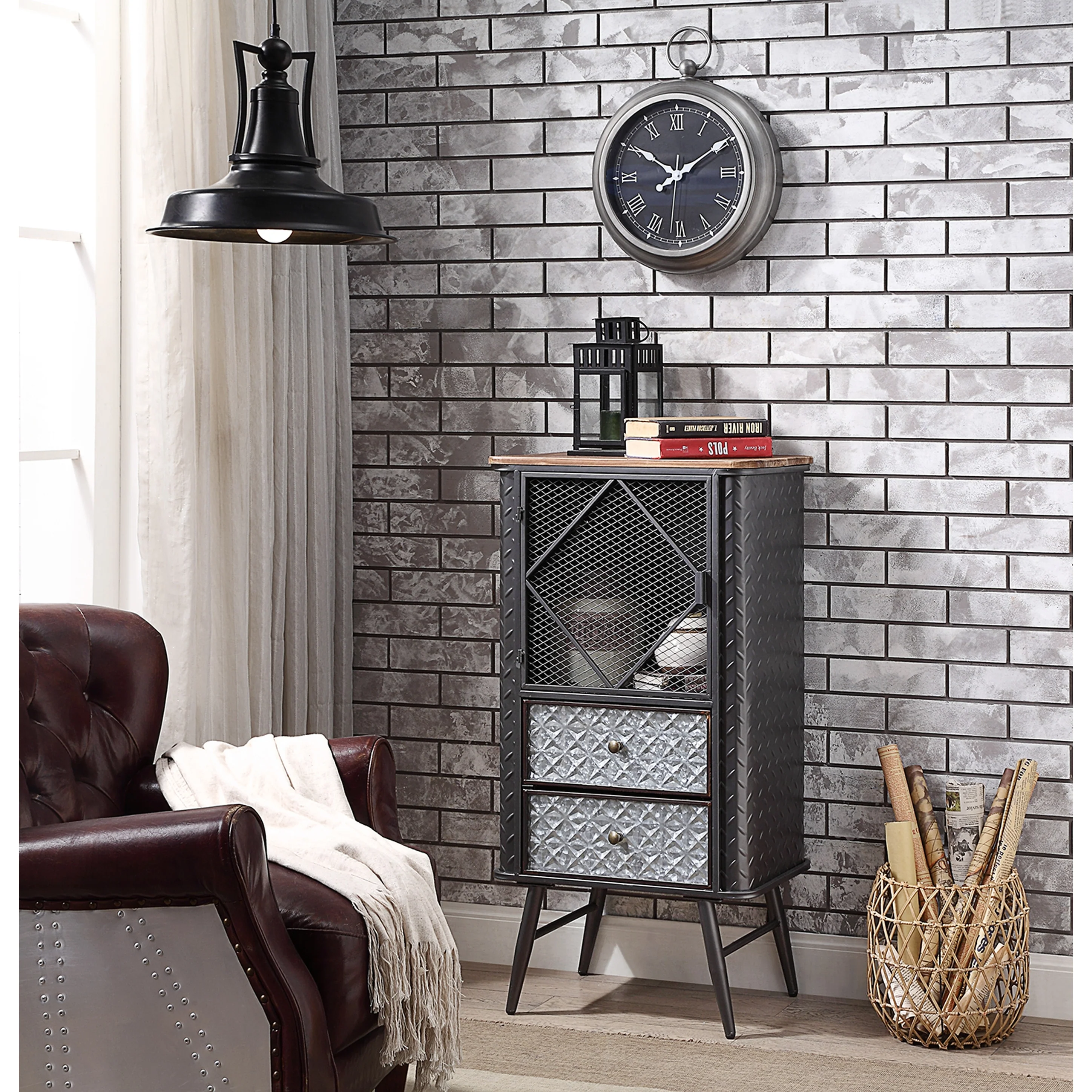 Industrial L-Shaped Corner Shelf Bookcase with Hidden Cabinet