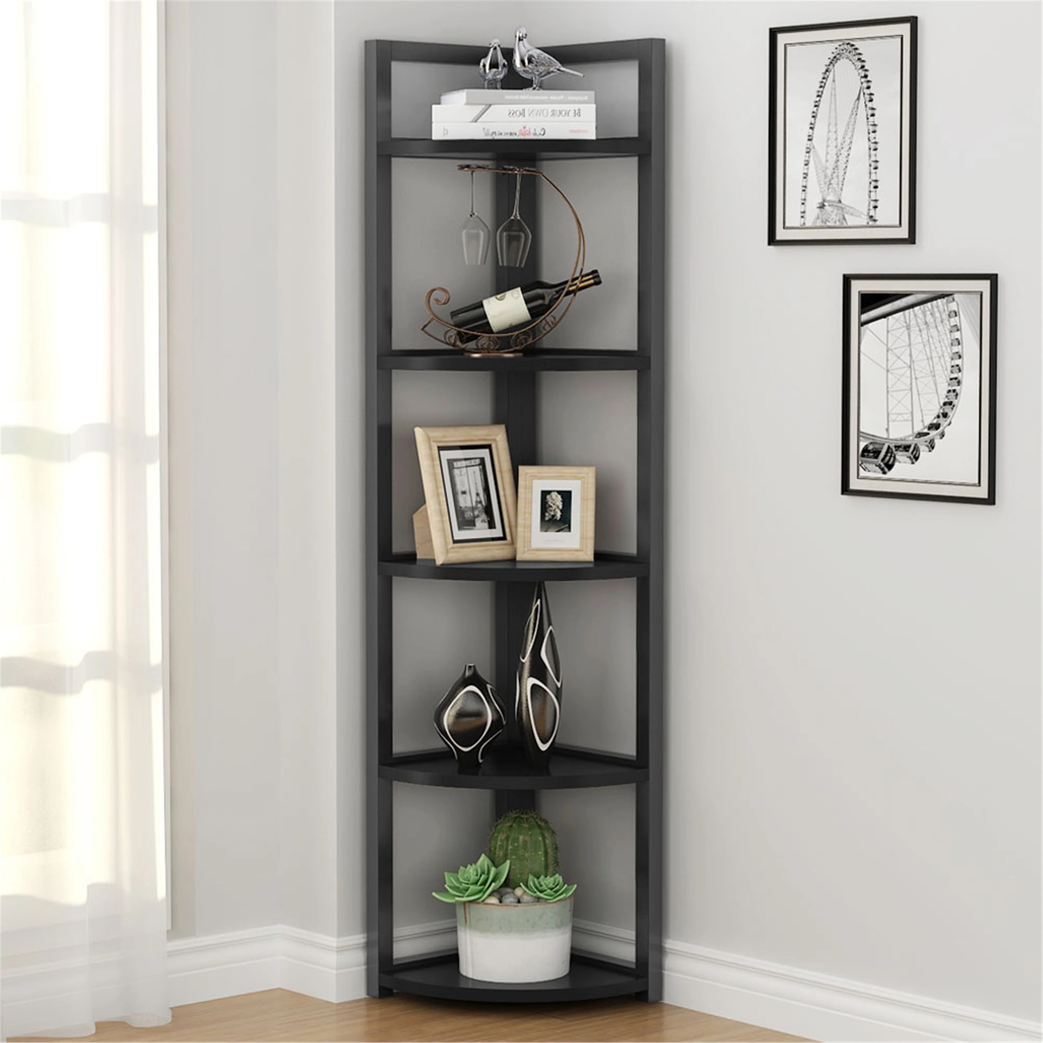 5 Tier Corner Shelf, Rustic Corner Storage Rack Plant Stand