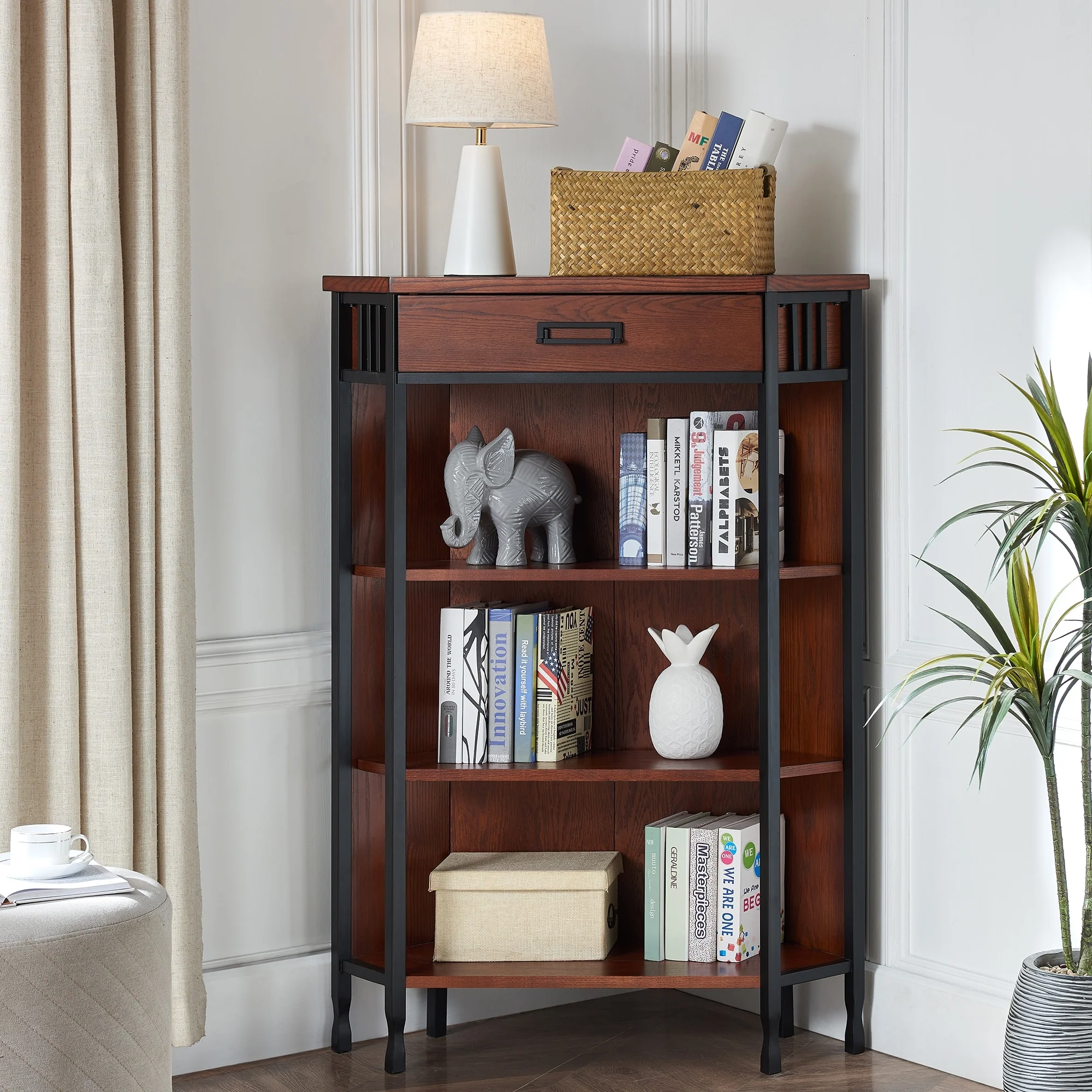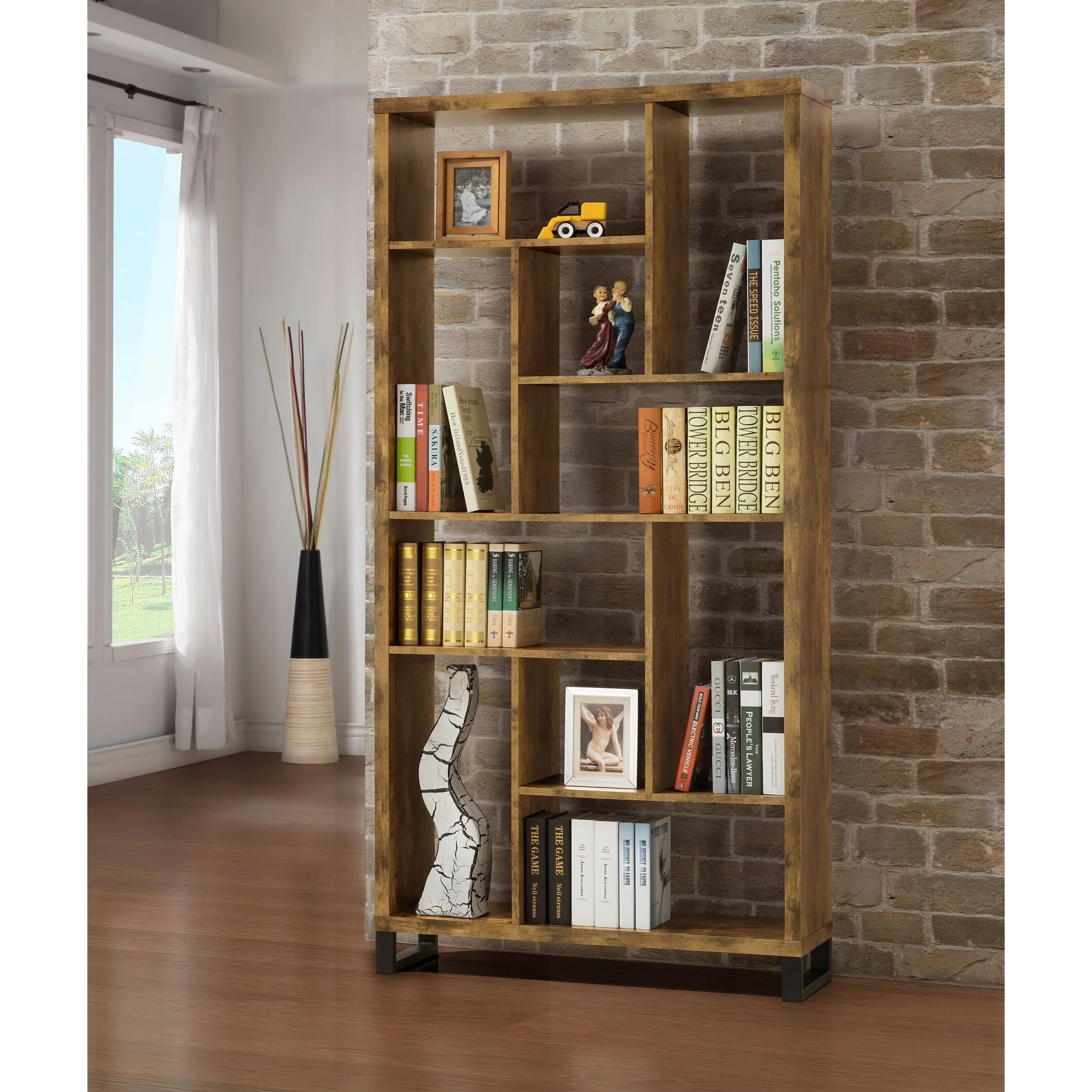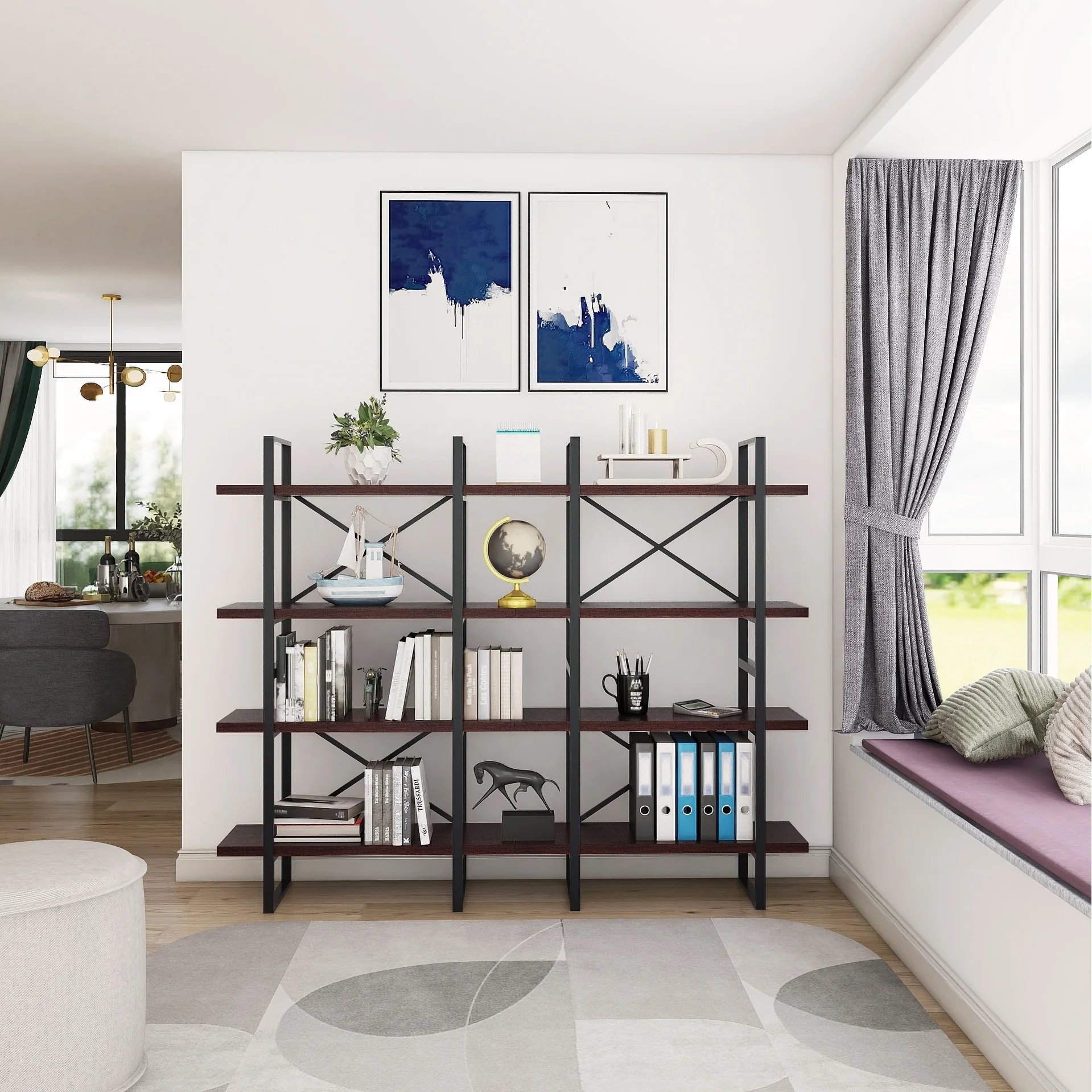 Industrial Wood Triple Wide 5-Shelf Open Bookshelf