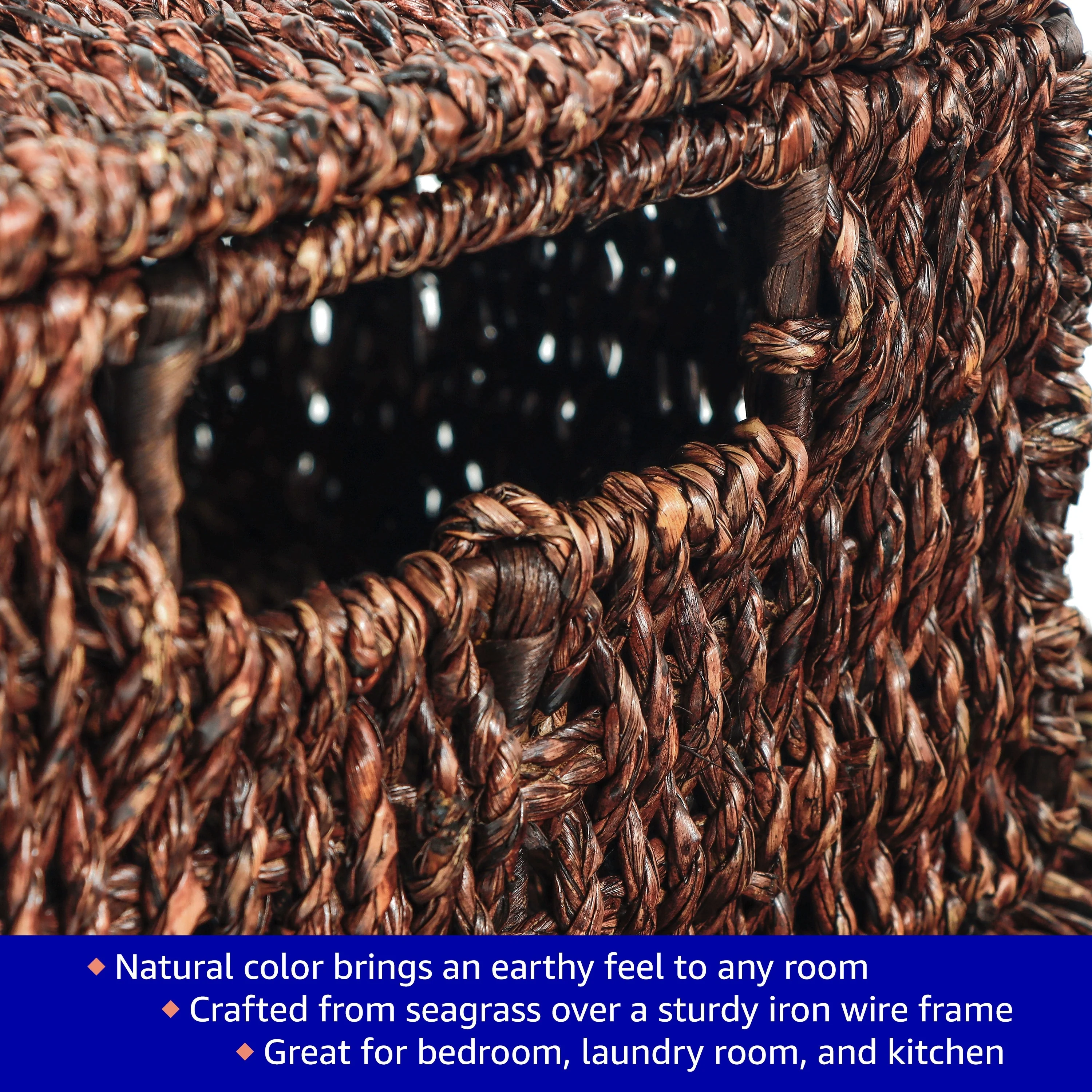 Simplify 3 Pack Set Rattan Tote Baskets in Charcoal