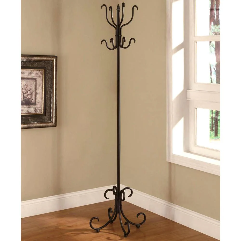Transitional Scrolled Design Black Metal Coat Rack