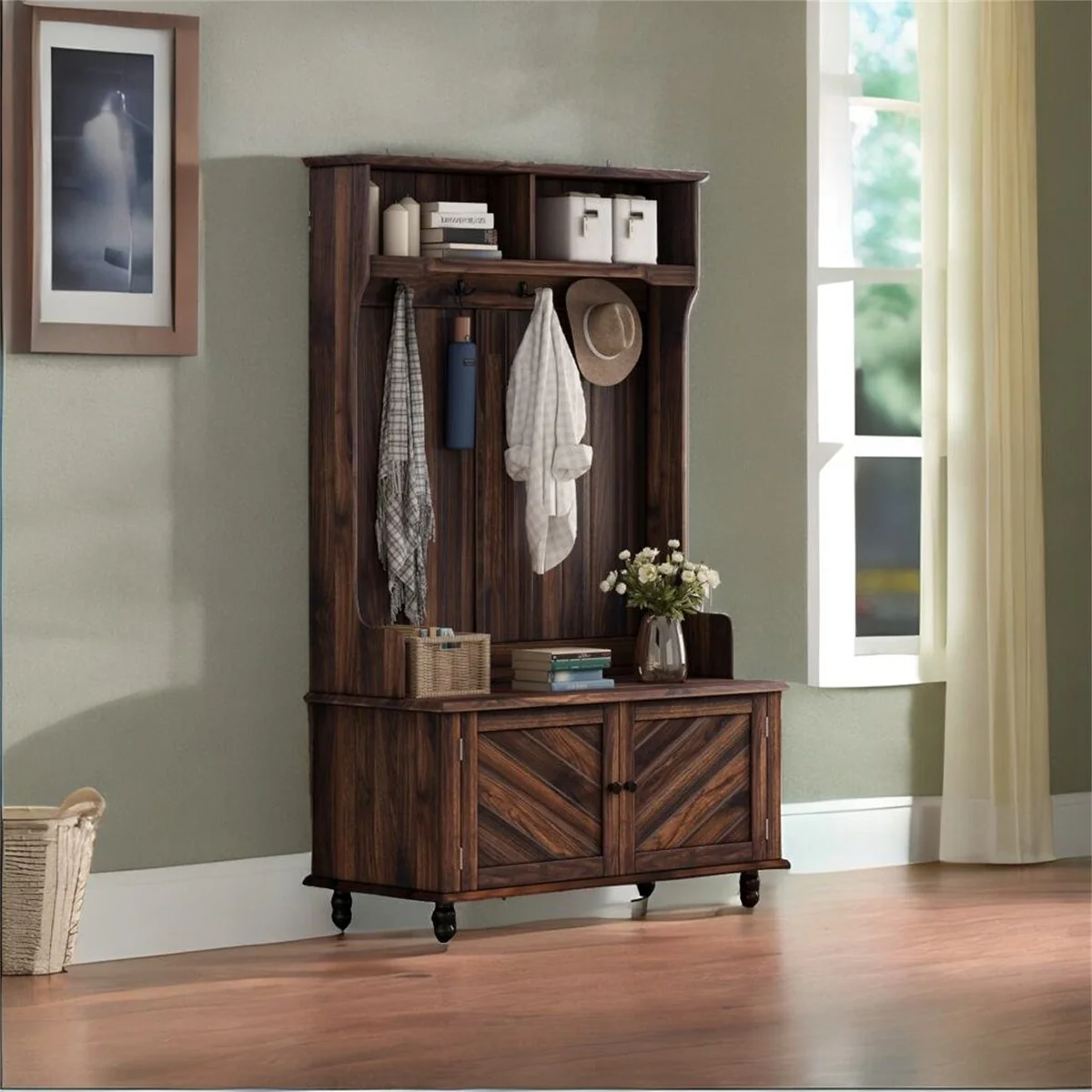 5-in-1 Entryway Bench with Coat Rack