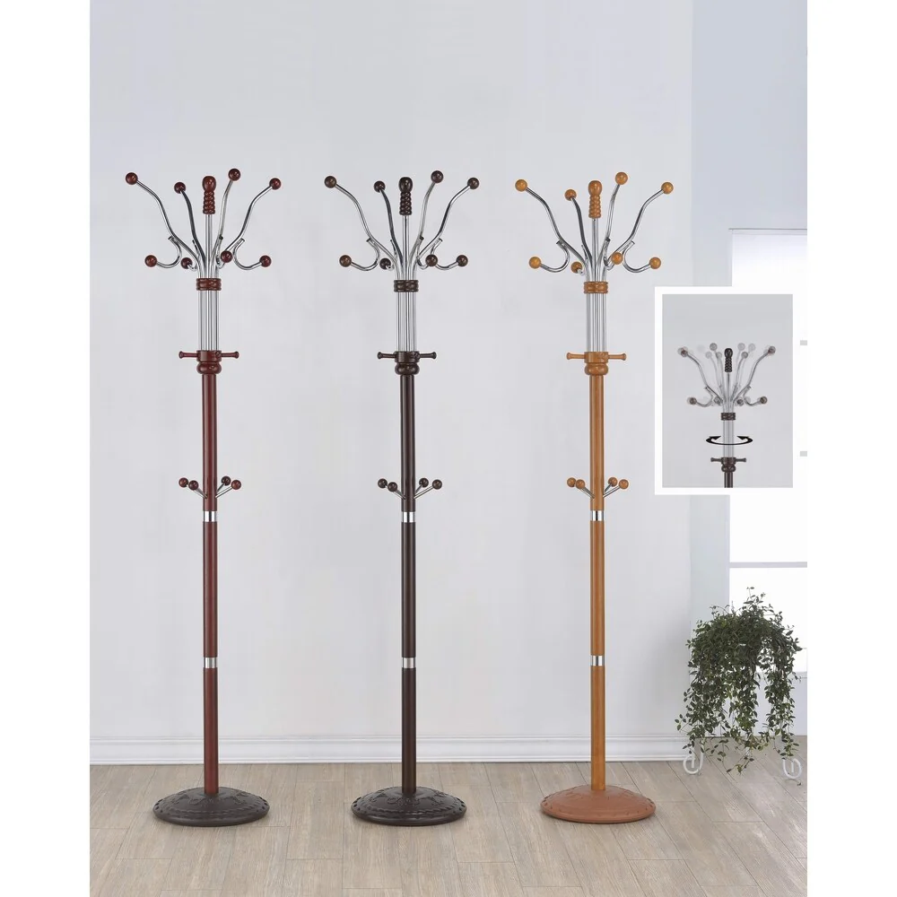 Acme Hubert Metal and Wood Coat Rack in Espresso with Swivel Top